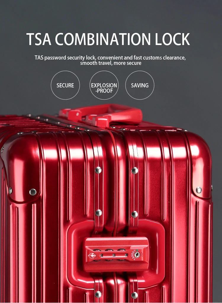 Invest in a travel experience that transcends the ordinary. Our aluminum-magnesium alloy suitcase isn't just luggage; it's a statement of quality and a commitment to stress-free travel. The inherent durability of the alloy construction means your suitcase can withstand the bumps and scrapes of transit, safeguarding your valuables. Imagine gliding through airports with ease, the silent spinner wheels making every step a pleasure. The TSA-approved lock offers security without hassle, allowing for swift inspections.