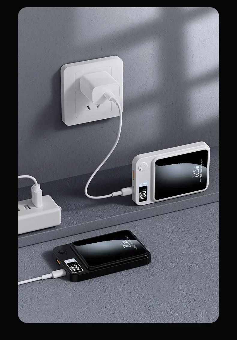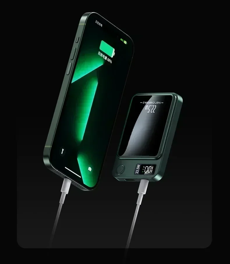 Enhance your mobile experience by eliminating worries about battery life during busy days, travel, or outdoor activities. The power bank’s magnetic wireless charging capability allows effortless snap-on charging, freeing you from tangled cables and enabling easy one-handed operation. Whether you are working, commuting, or relaxing, stay connected longer with this reliable external backup battery.