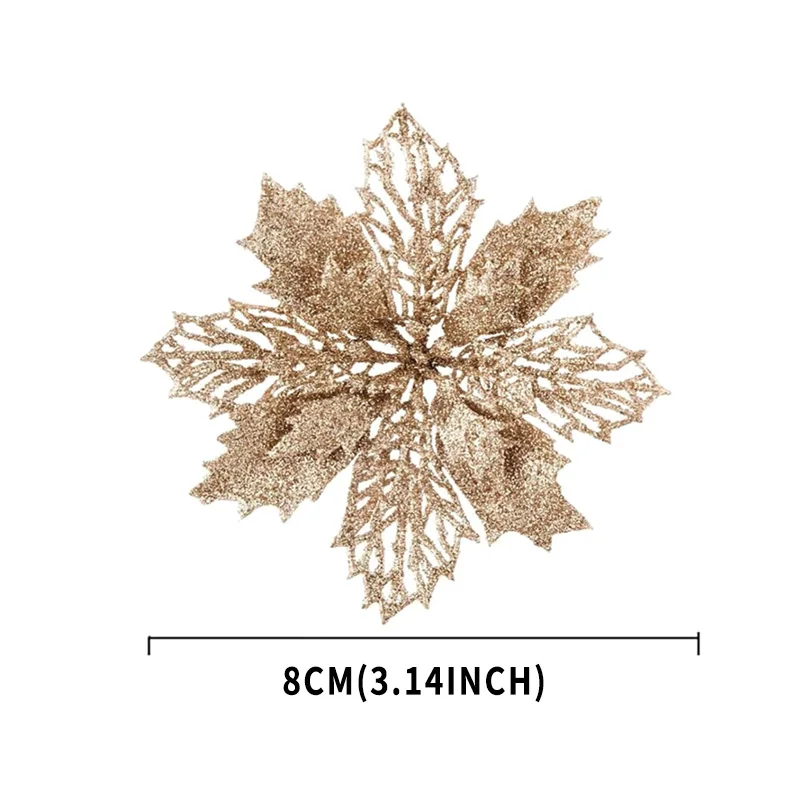 8cm Christmas Flower Ornaments – Festive Sparkle for Your Holiday Decor