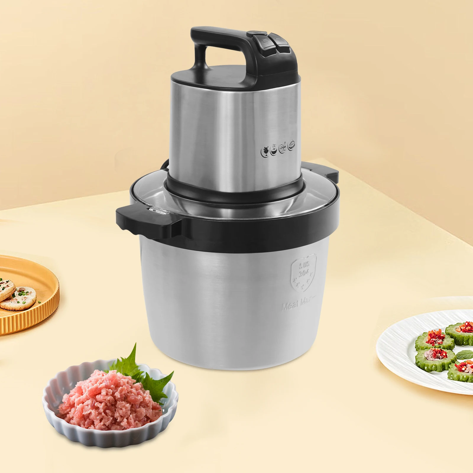 This robust electric food chopper boasts a formidable 1500W motor, ensuring rapid and consistent results every time. Its generous 6.5-liter large capacity bowl is perfect for preparing family-sized meals, batch cooking, or entertaining guests. Say goodbye to multiple chopping sessions; this chopper handles it all with ease.
