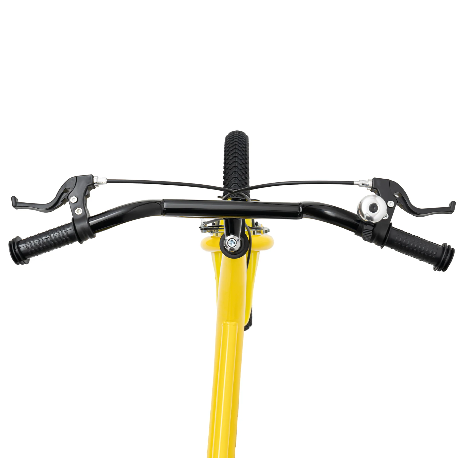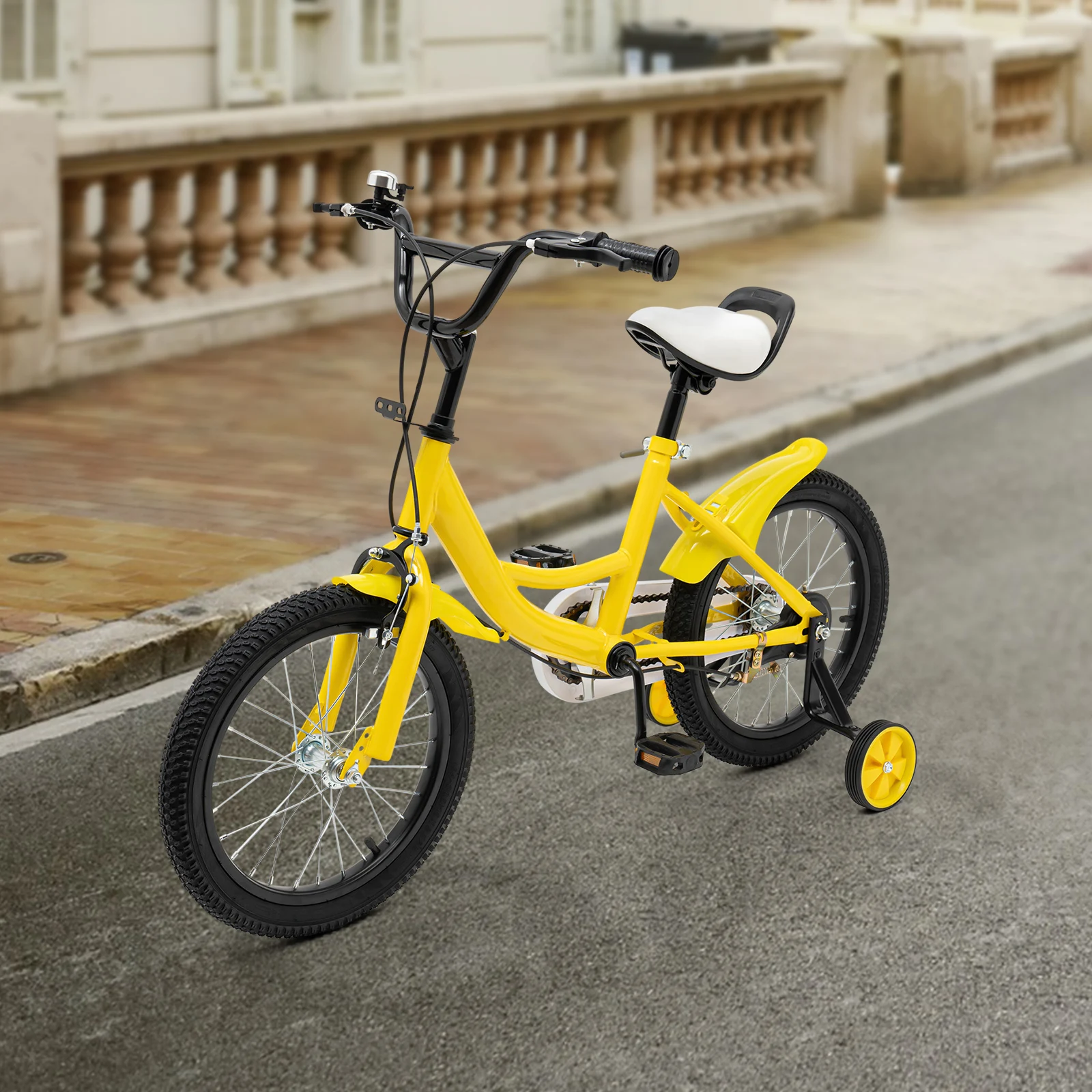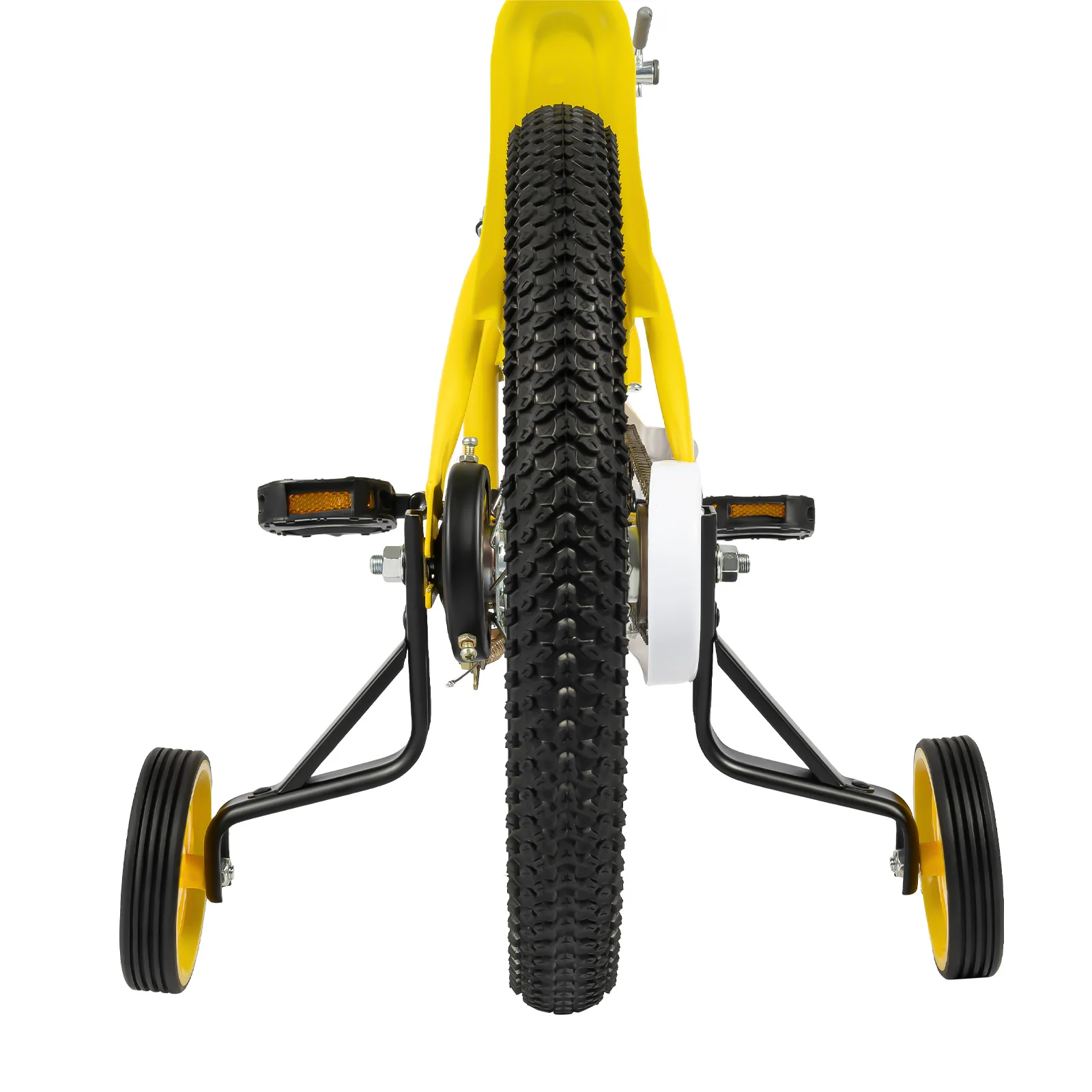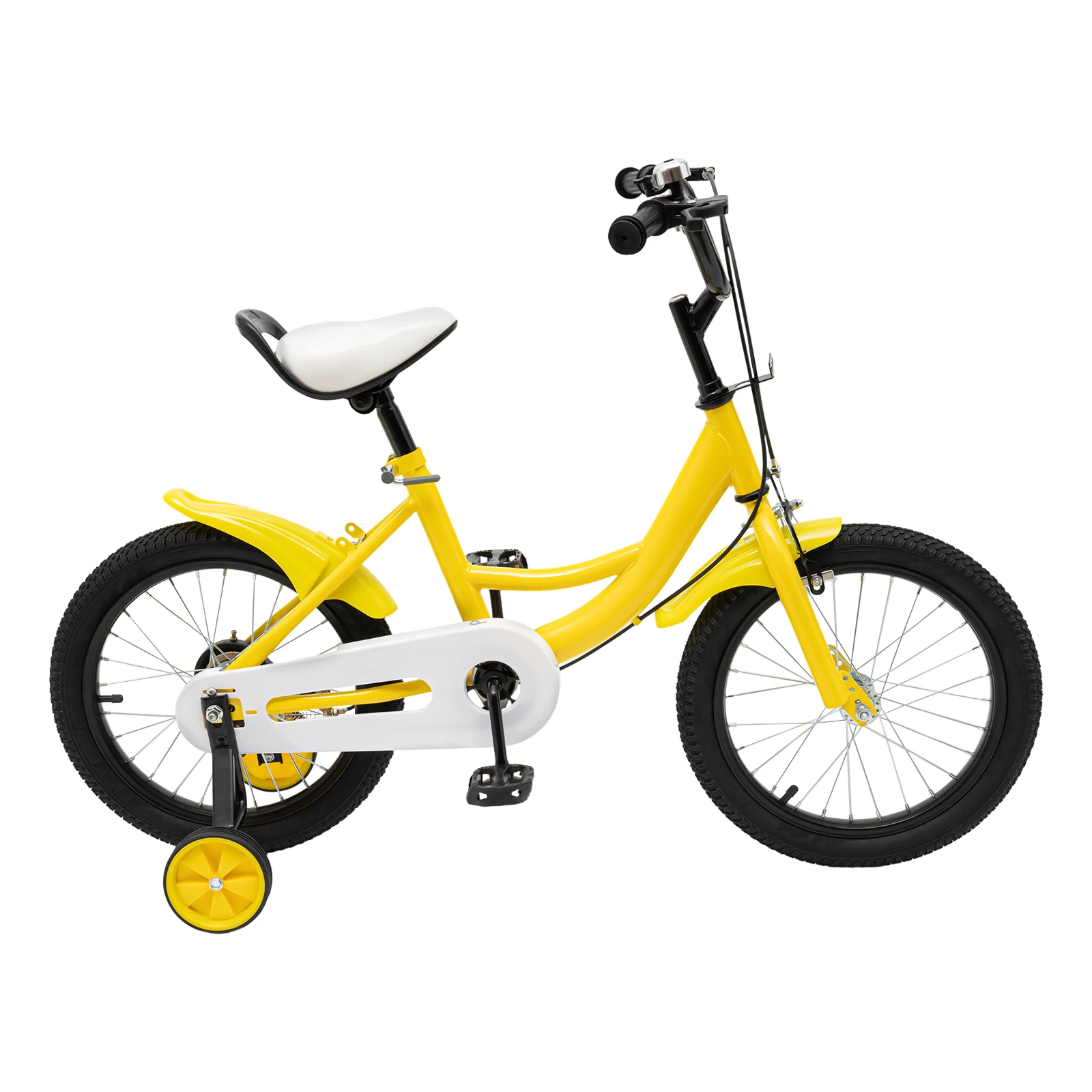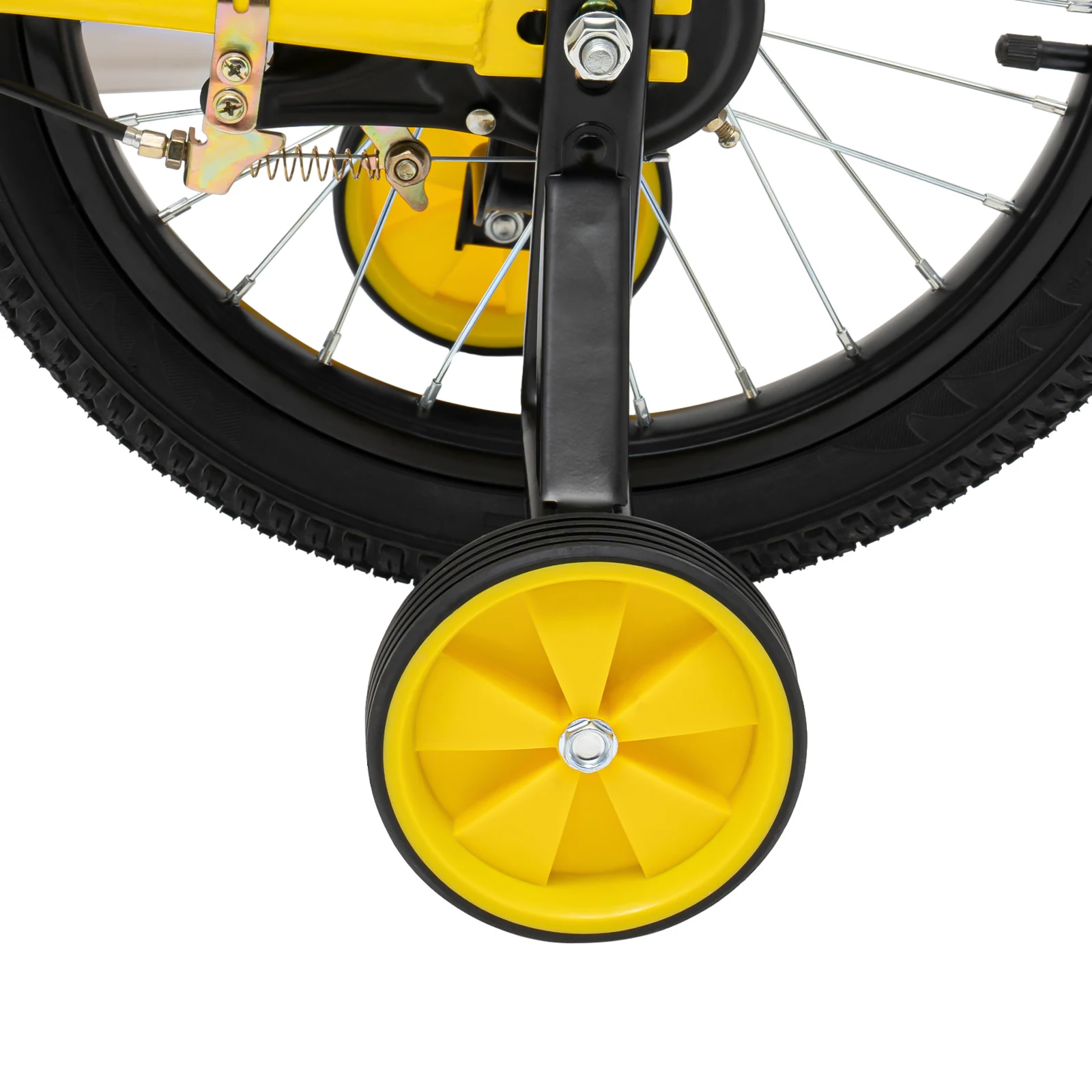 Durable 16-inch children's bike in bright yellow, perfect for ages 5-8. Features height-adjustable seat and stabilisers for safe, comfortable rides. Ideal gift for boys and girls, shipped from Germany. Boost your child’s confidence and outdoor fun today!