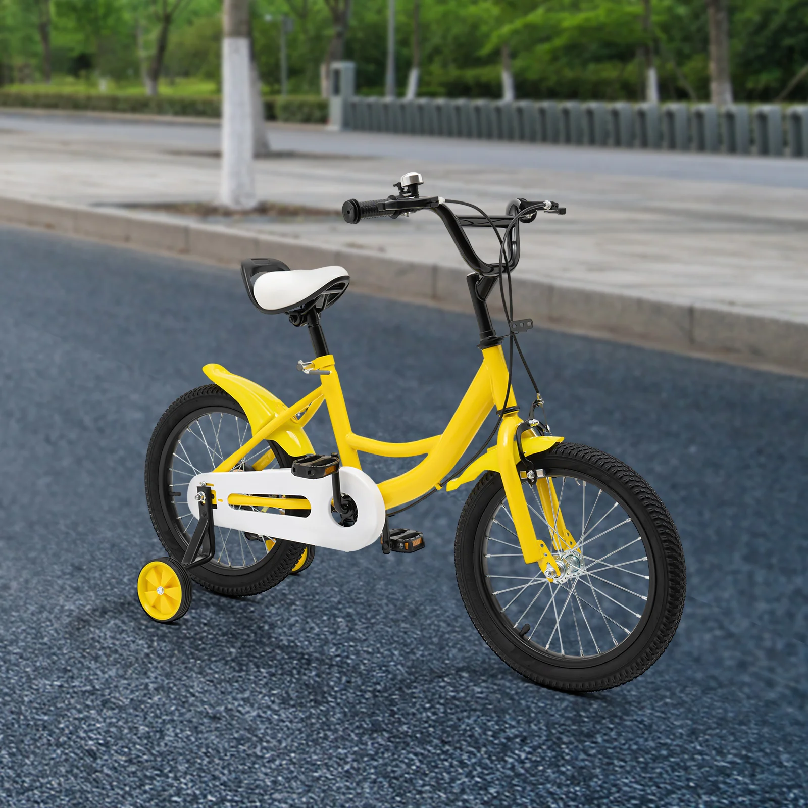 16 Inch Children’s Bicycle With Auxiliary Wheels And Dual Brakes – Yellow