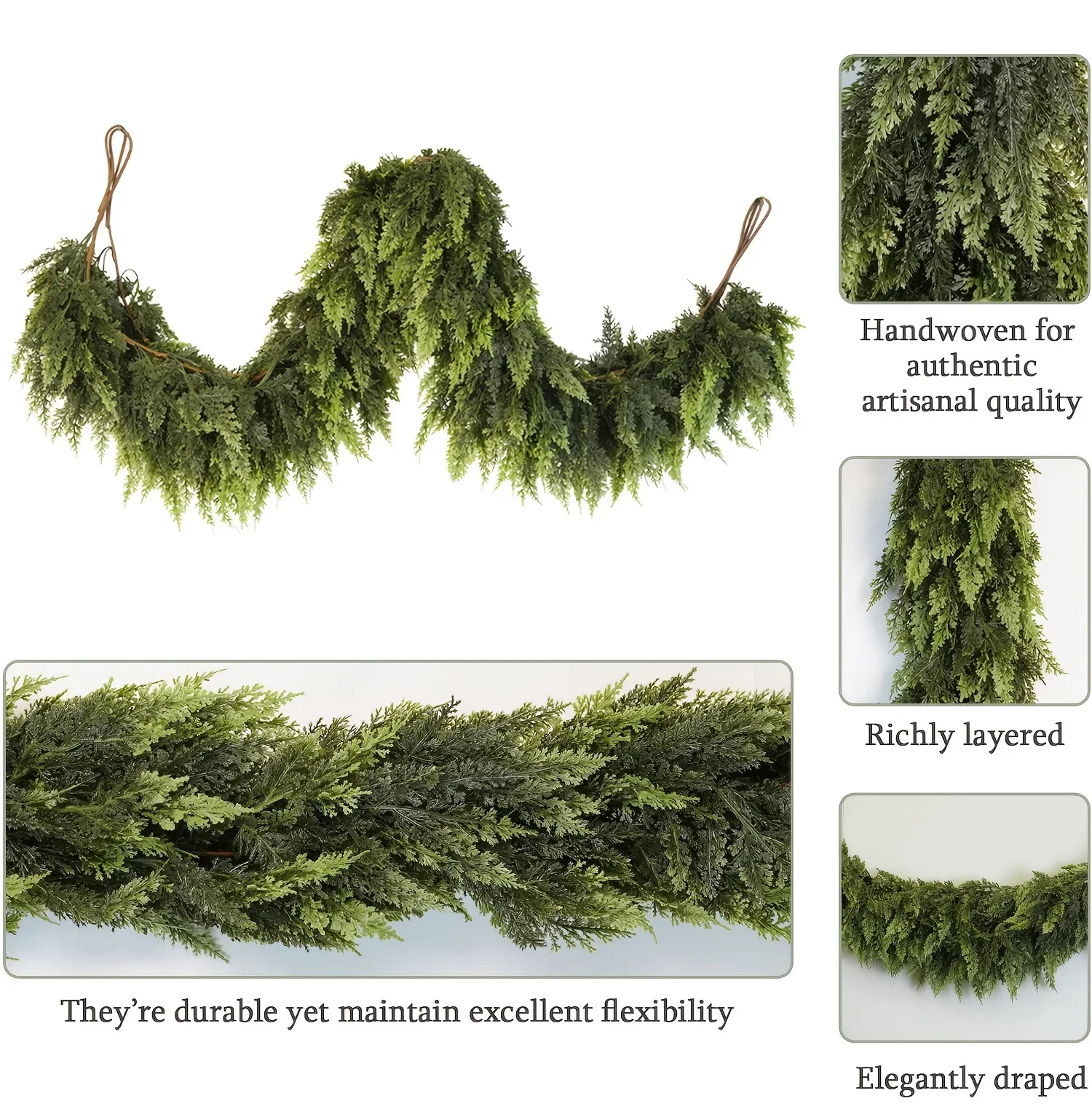 Imagine the cozy glow of your fireplace framed by this lush garland, or the welcoming embrace of your home entrance adorned with its festive greenery. This garland is not just a decoration; it's an invitation to gather, celebrate, and create cherished holiday memories. Its lifelike appearance means you can enjoy the beauty of a Christmas tree without the mess or upkeep, making your holiday season stress-free and enjoyable.