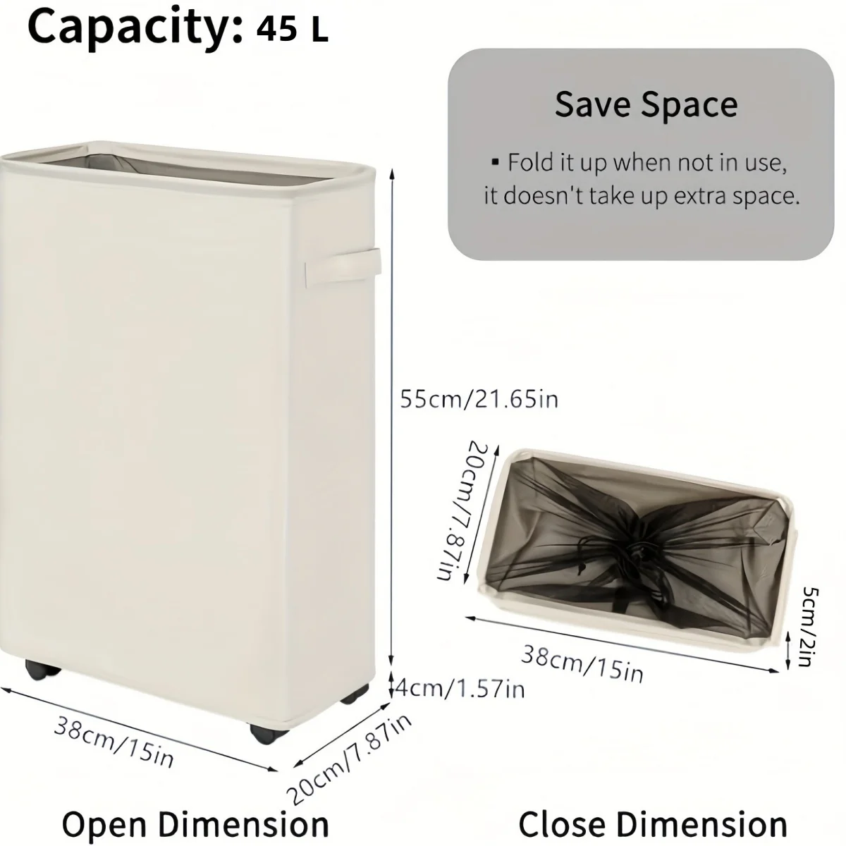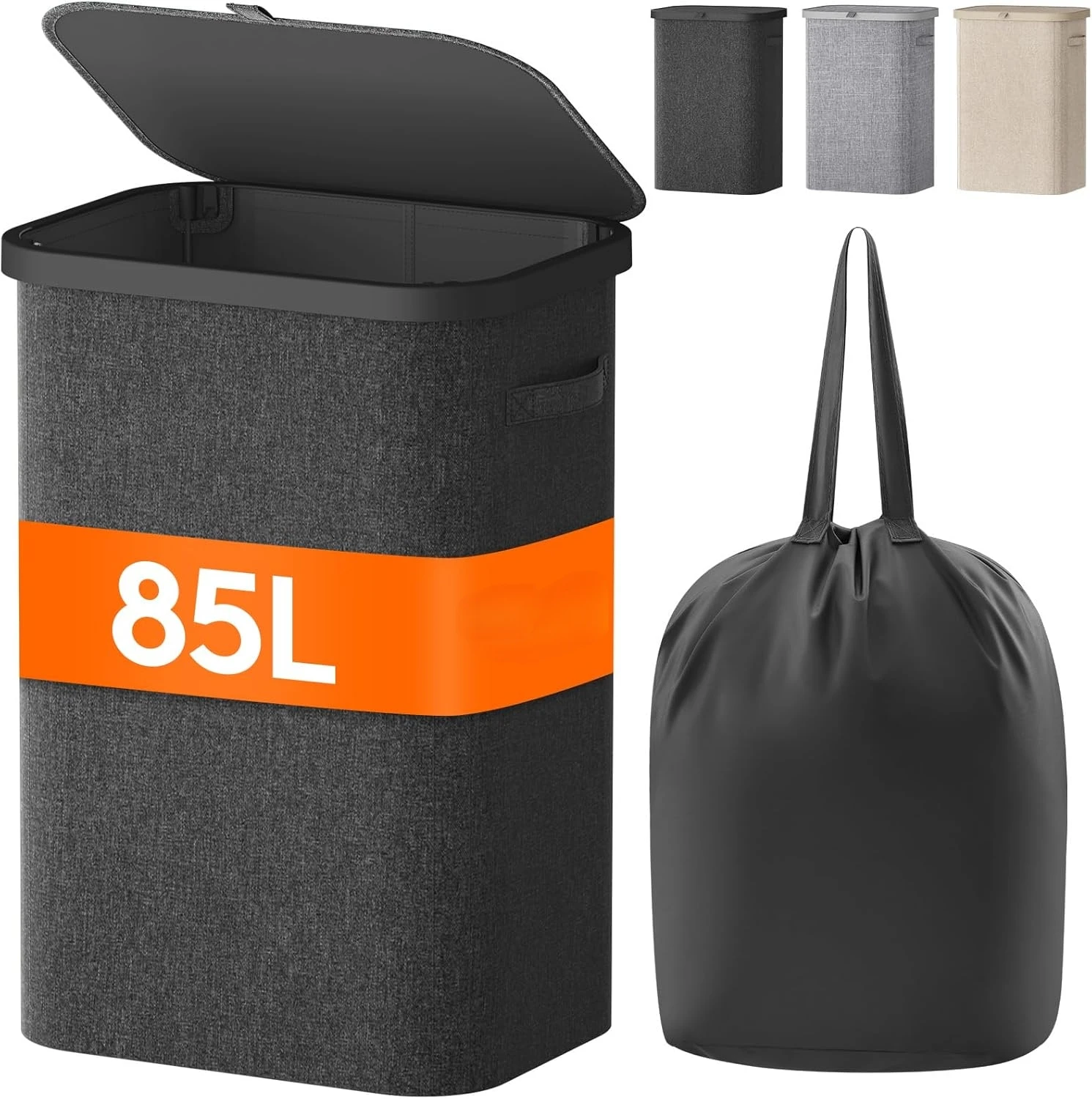 – Available in multiple colors (Gray, Beige, Black) and sizes (45L, 60L, 85L) to suit your space and needs