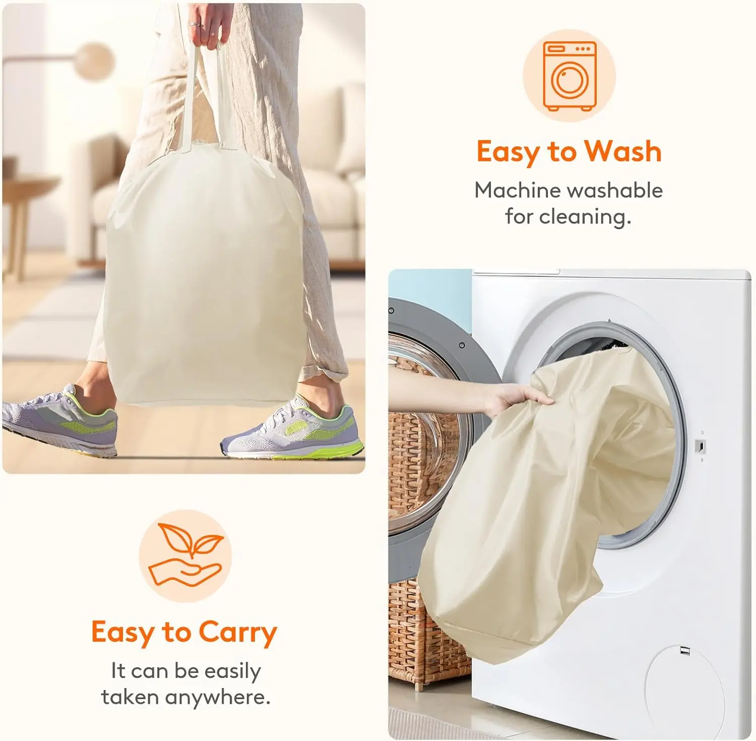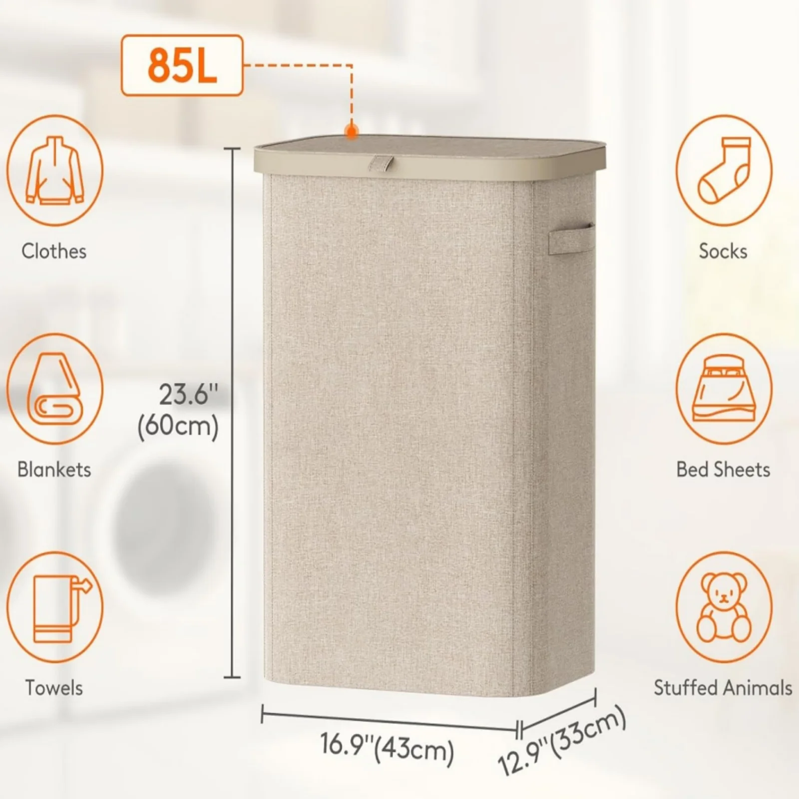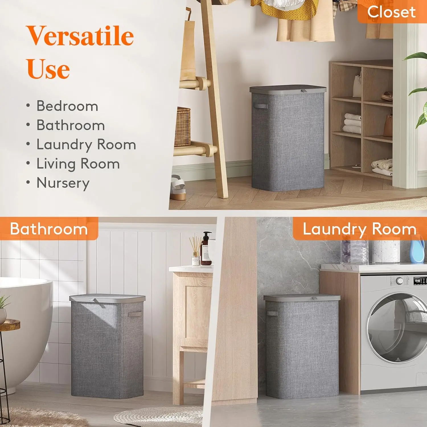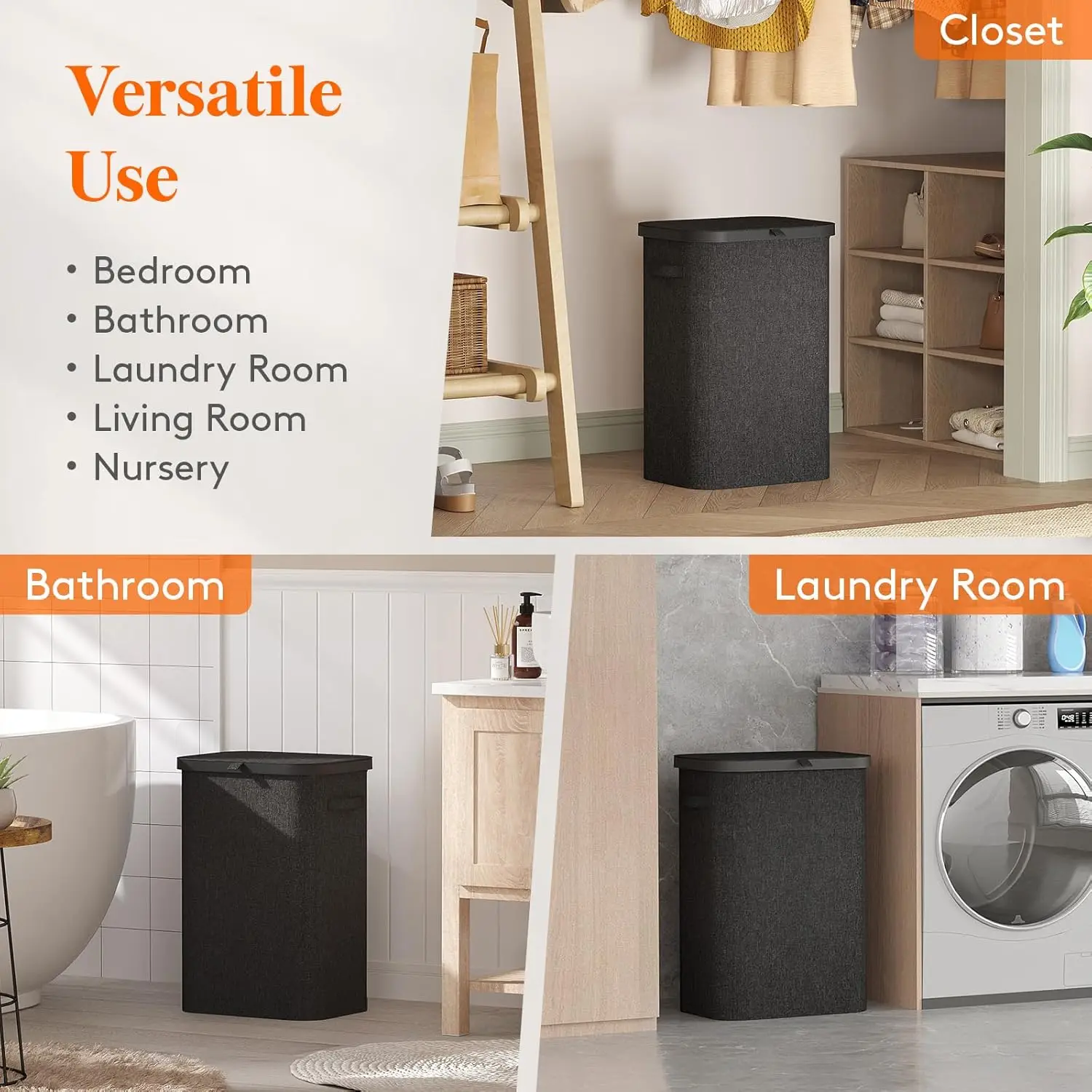 – Secure lid design to keep laundry out of sight and prevent odors from spreading