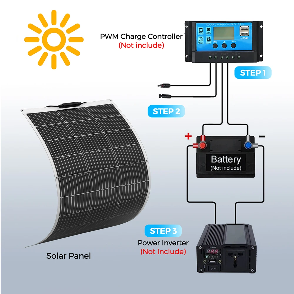 – Flexible, lightweight design allows easy installation on curved surfaces, ideal for motorhomes, boats, and uneven rooftops.