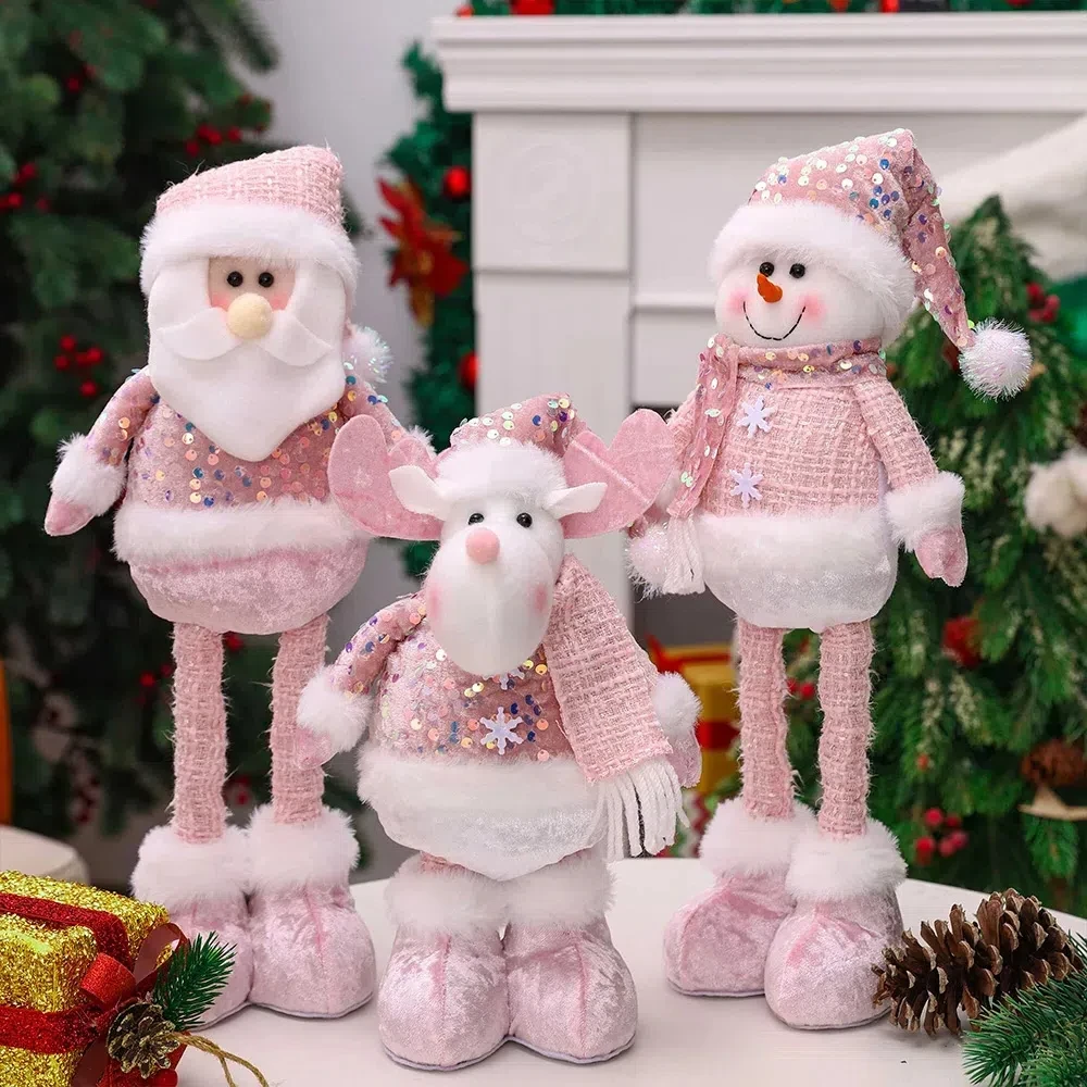 Charming Pink Christmas Telescopic Figures – Add Whimsy to Your Holiday Decor
