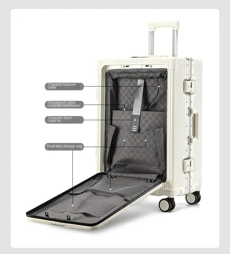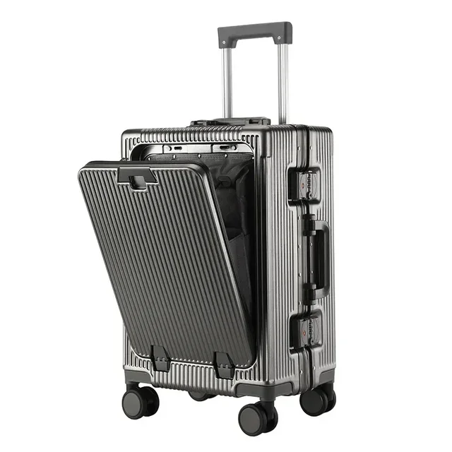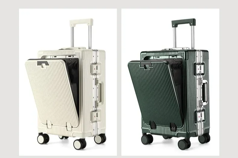 20 Inch Carry On Luggage with Wheels – Front Opening Aluminum Frame Boarding Case