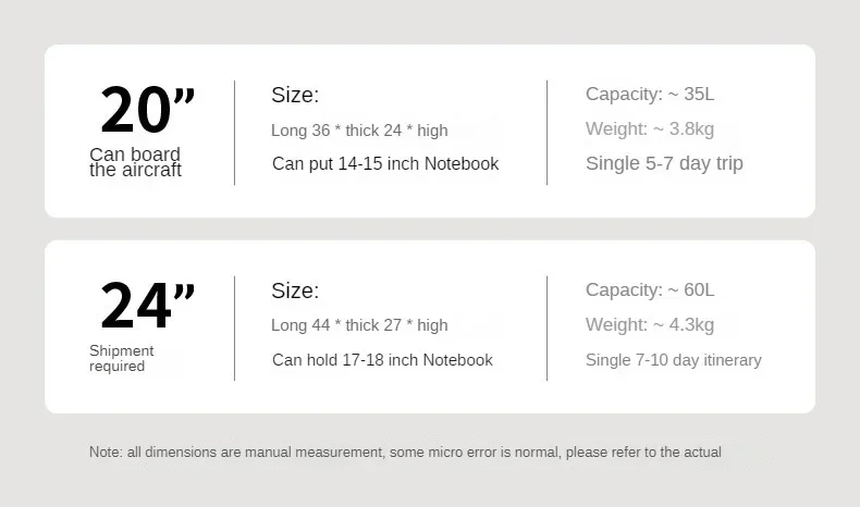 This 20-inch boarding case is not just about durability and convenience; it’s also about making a statement. Available in a range of sophisticated colors, including Dark Gray, Silvery, Black, and White, you can select the option that best reflects your personal style. Travel with a piece that is as fashionable as it is functional.