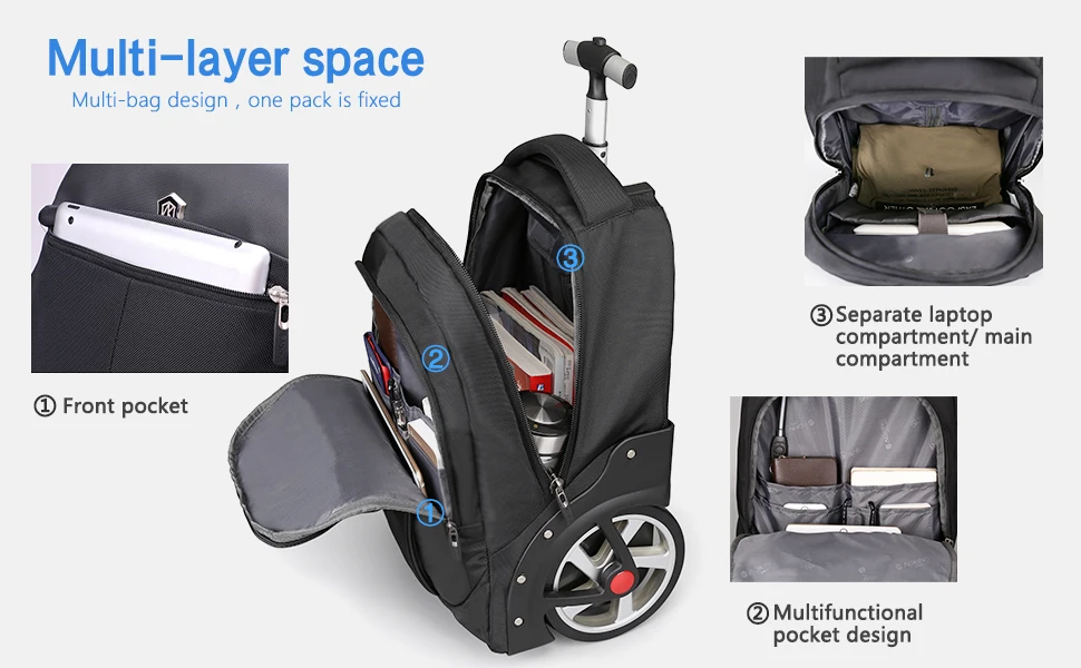 - Dual-Functionality: Effortlessly converts from a rolling trolley bag to a comfortable backpack, adapting to any terrain or travel scenario.