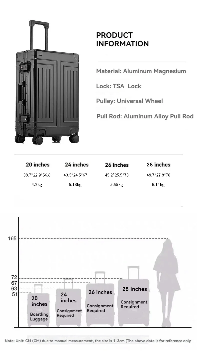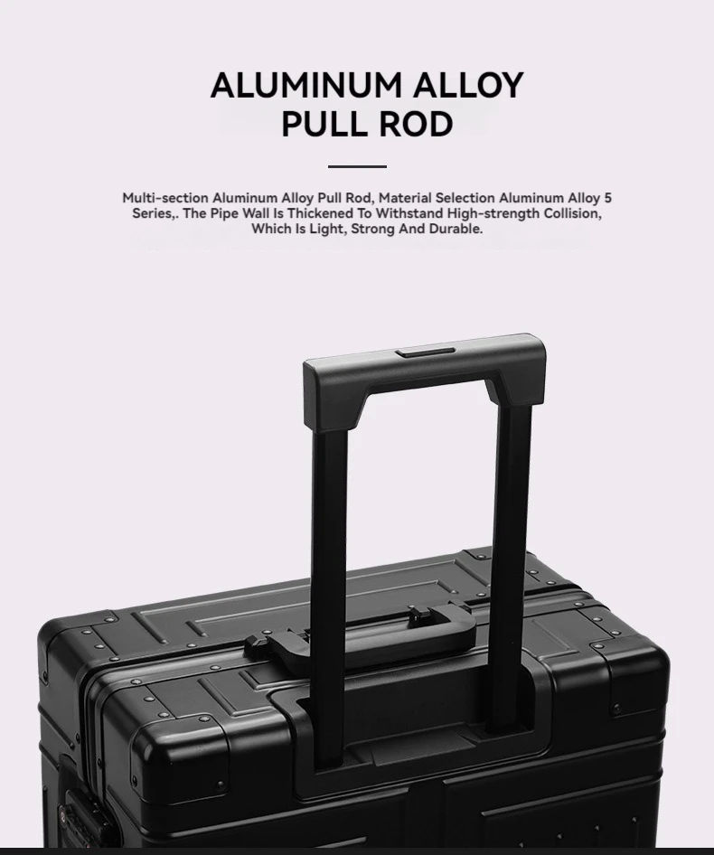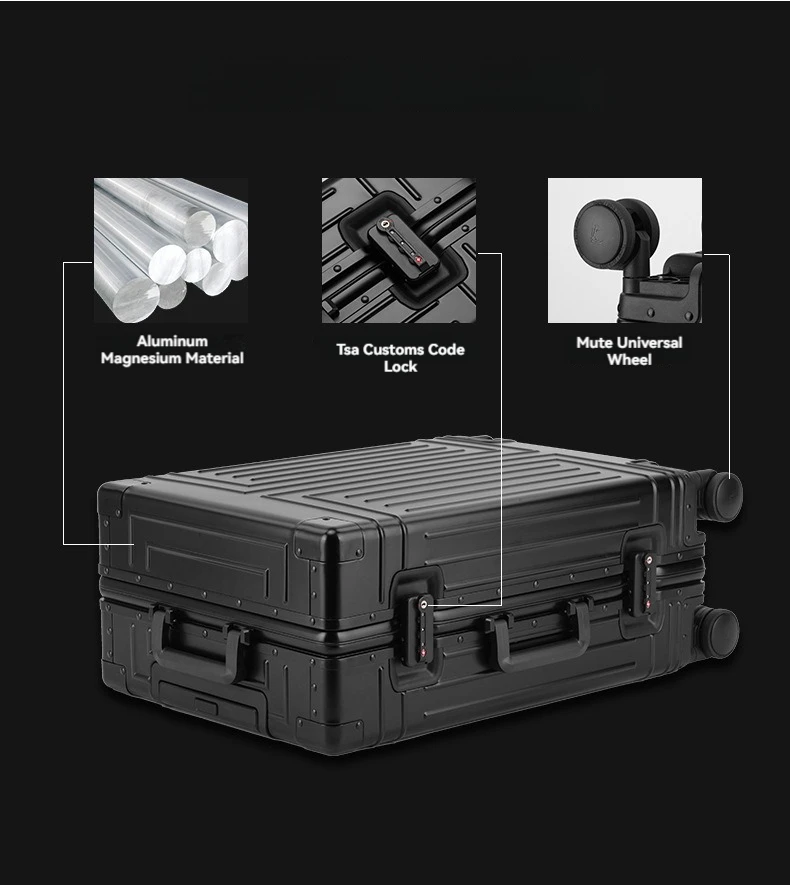 Crafted from high-grade aluminum, these suitcases are not only incredibly durable but also remarkably lightweight, making them easy to lift and handle. The interior is lined with a premium fabric and features a smart organizational system to keep your clothes and accessories perfectly in place. The sleek, modern design is ideal for both men and women, offering a timeless appeal that complements any travel ensemble. These suitcases are more than just luggage; they are a reliable partner for all your journeys, promising years of dependable service and style.