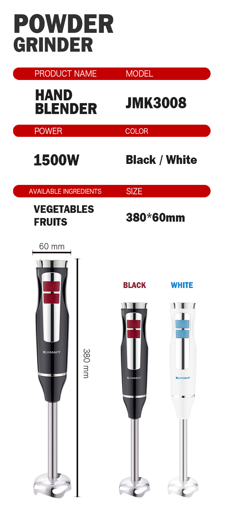 - Multi-functional design: blender, cooking stick, meat grinder, and food processor in one compact unit.