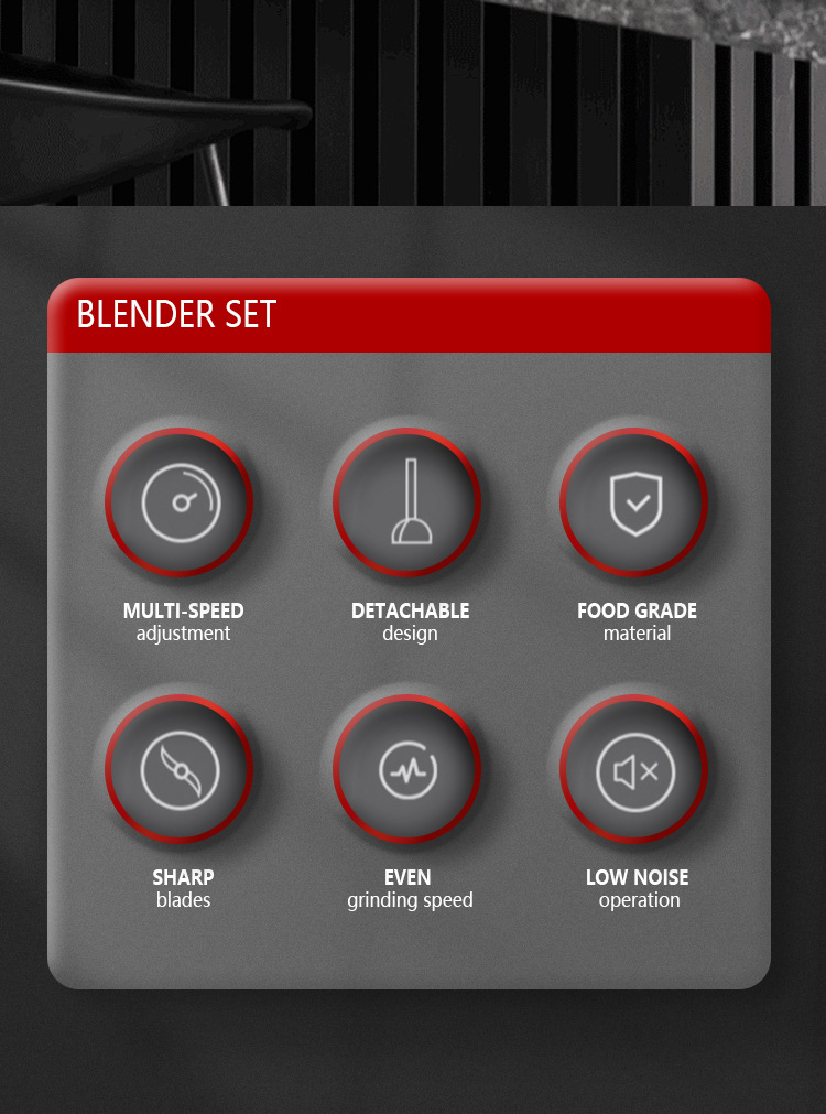 Crafted with high-quality, food-grade materials, this blender is built for durability and safety. The detachable components are easy to clean; simply rinse under running water or place them in the dishwasher for effortless maintenance. Its sleek design and choice of sophisticated colors ensure it will be a stylish and functional addition to your kitchen. Experience the future of home cooking with an appliance that offers exceptional performance, remarkable versatility, and user-friendly operation.