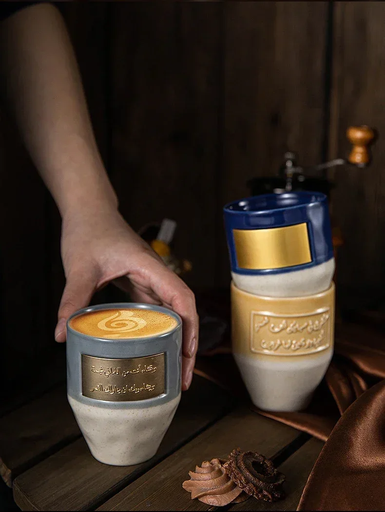Indulge in the rich traditions of Middle Eastern hospitality with our exquisitely crafted 265ml Saudi Style Ceramic Mug. Designed for discerning individuals who appreciate both form and function, this mug is more than just a vessel for your favorite drinks; it’s a statement piece that adds a touch of elegance to your daily routine. Whether you’re savoring a steaming cup of Arabic coffee, enjoying a refreshing iced latte, or simply starting your day with a comforting mug of milk, this versatile cup is your ideal companion.