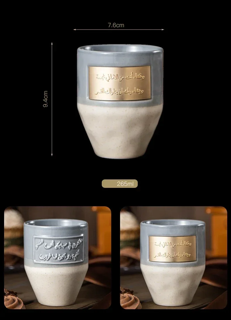Crafted from high-quality ceramic, this mug is built to last. To maintain its beauty and integrity, we recommend hand washing with mild soap and water. Avoid using abrasive cleaners or harsh scrubbing to preserve the exquisite finish. This mug is designed for regular use and is a perfect addition to your collection of home accessories or a cherished piece for your office. Embrace the elegance and functionality of the 265ml Large Capacity Saudi Style Ceramic Mug and transform your daily rituals.