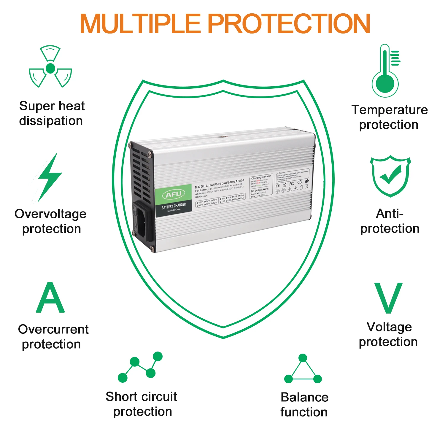 This charger provides a reliable power source that extends the life of your LiFePO4 batteries by delivering optimal voltage and current tailored to their chemistry. Its adjustable connectors enable hassle-free setup with different battery terminals, making it suitable for applications such as electric vehicles, renewable energy storage, and industrial equipment. By using this charger, you ensure efficient energy transfer, reduce charging time, and maintain battery health, ultimately saving costs on replacements and downtime.