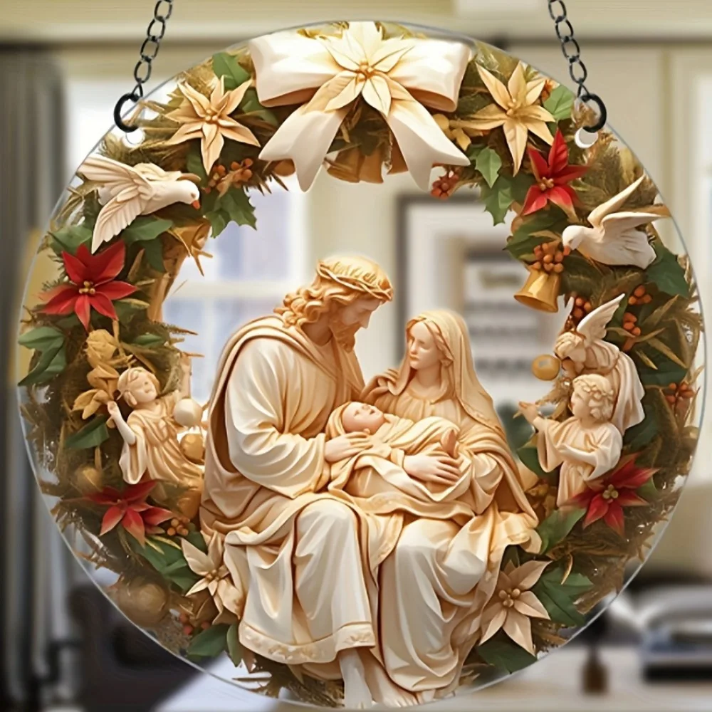 Crafted from durable acrylic, this pendant is designed for longevity. Simply wipe with a soft, dry cloth to maintain its pristine appearance. Its lightweight nature ensures it won't weigh down delicate branches or cause any damage. This ornament is a thoughtful and meaningful addition to any Christmas decor collection, serving as a constant reminder of faith and the blessings of the season. It's a perfect way to infuse your holiday season with a sense of spiritual warmth and enduring beauty.