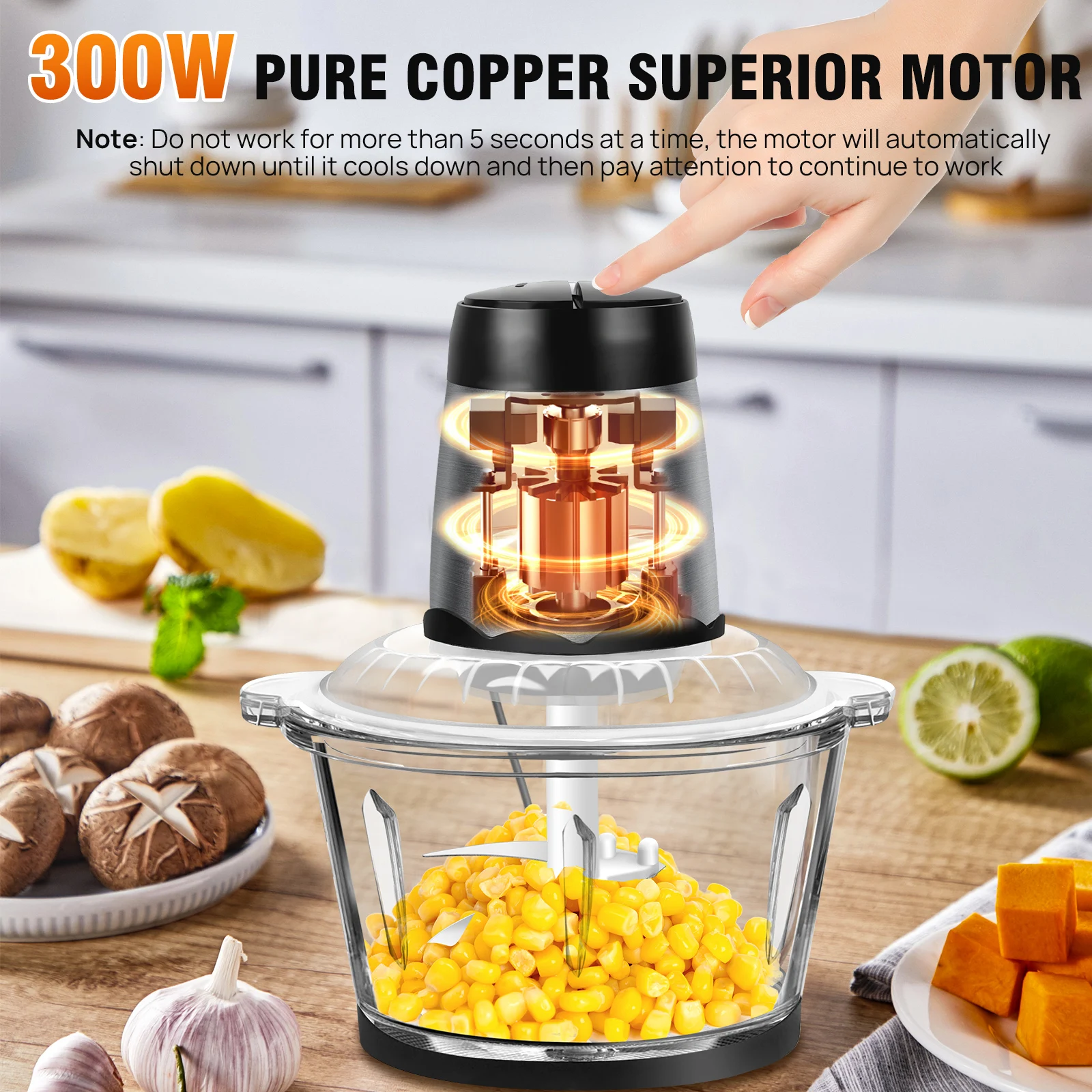 – Four durable stainless steel blades ensure efficient and uniform mincing.