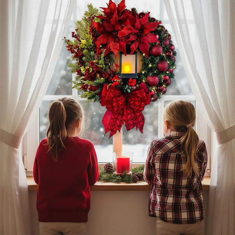 Beyond the front door, this wreath offers endless decorative possibilities. Drape it over a mirror to add a festive sparkle, hang it on a bare wall to bring seasonal color, or place it above your fireplace mantel for a cozy, Christmassy ambiance. It’s also a wonderful way to enhance the festive feel of any room, from the living room to the dining area. This wreath isn't just a decoration; it's an invitation to embrace the magic of Christmas.