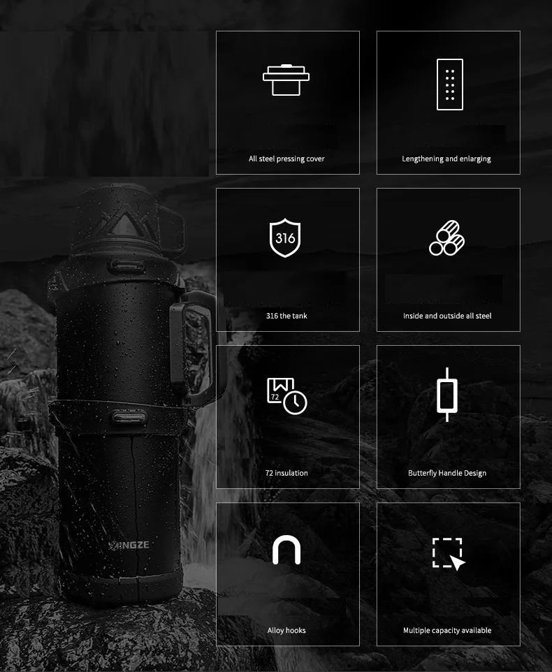 Elevate your beverage experience with the 316 Stainless Steel Big Capacity Thermos Bottle—where functionality meets style and reliability.