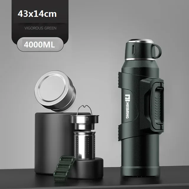 Stay hydrated on the go with this 4L 316 stainless steel thermos bottle. Durable, corrosion-resistant, and vacuum insulated, it keeps drinks hot or cold for hours. Available in silver, green, and black—perfect for outdoor adventures and daily use.