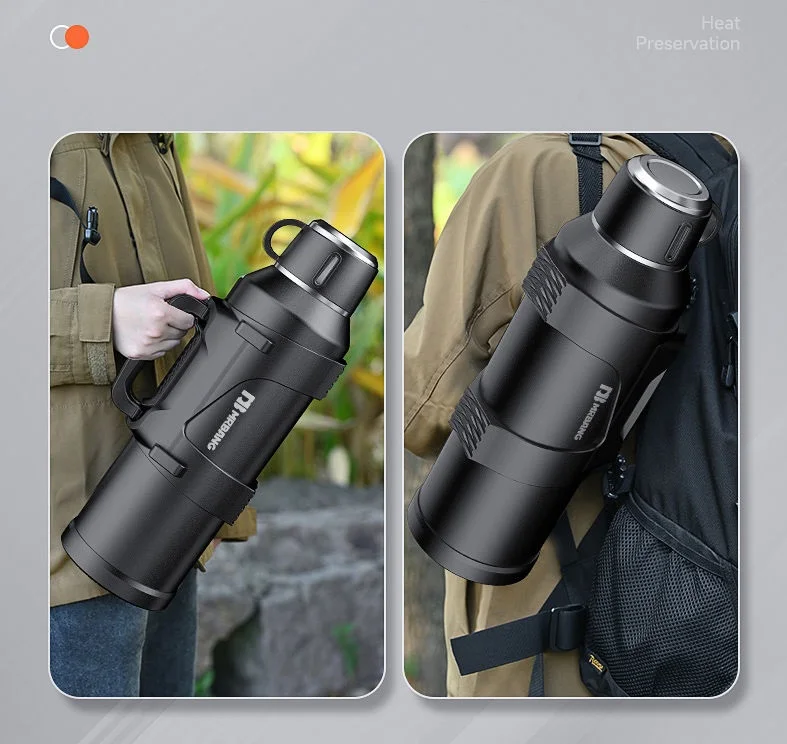 This thermos bottle is ideal for campers, hikers, travelers, and anyone who requires a dependable container for hot coffee, tea, water, or other beverages. Its exceptional thermal retention means your drinks stay fresh and at the desired temperature throughout the day. The large capacity eliminates the need for frequent refills, making it an efficient choice for group activities or long work shifts. Whether you’re on a rugged trail or at your desk, this thermal mug offers convenience and reliability.