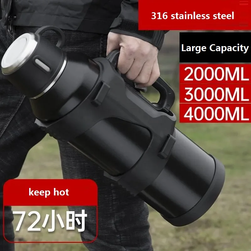 316 Stainless Steel Big Capacity Thermos Bottle 4L Outdoor Travel Coffee Mugs Thermal Vaccum Water Bottle Thermal Mug