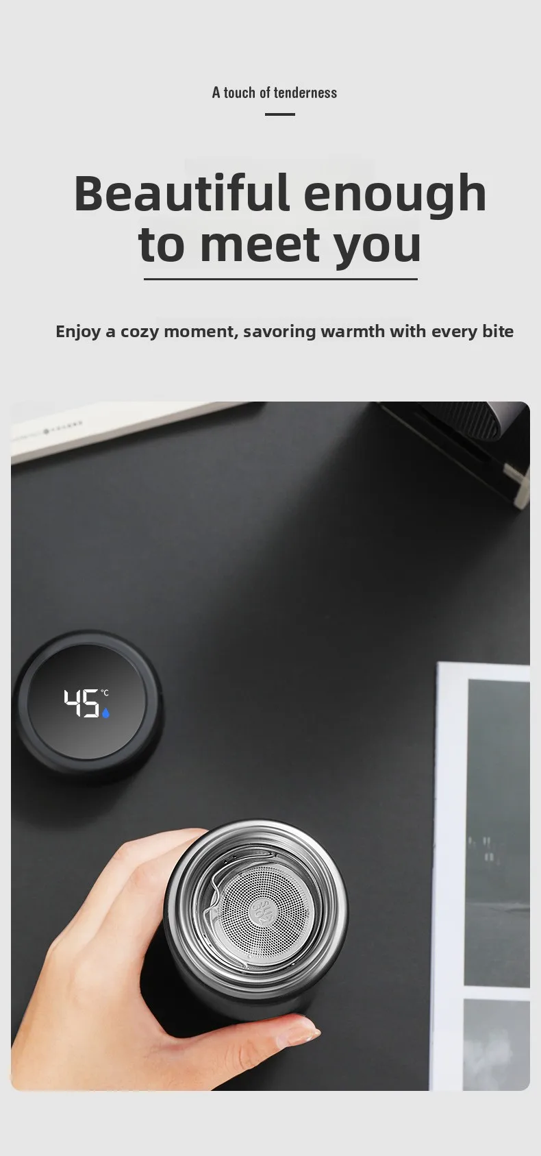 This smart thermos mug elevates your drinking experience by keeping your beverages perfectly hot or cold throughout the day. The intuitive LED display eliminates guesswork, so you always know the exact temperature of your drink. The tea separation compartment enables convenient brewing without compromising taste, making it ideal for tea lovers. Its ergonomic design fits comfortably in your hand and most cup holders, enhancing portability and everyday usability. Whether you need a reliable companion for your morning commute, office desk, or outdoor adventures, this thermos mug is engineered to meet your needs.