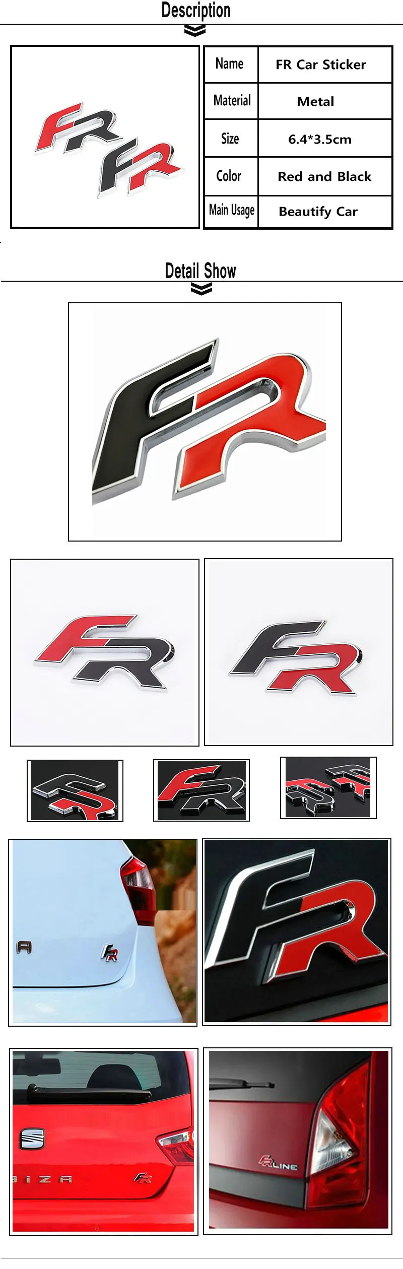 3D FR Car Sticker Front Grill Zinc Alloy Badge Emblem for Seat Ibiza Leon Altea FR