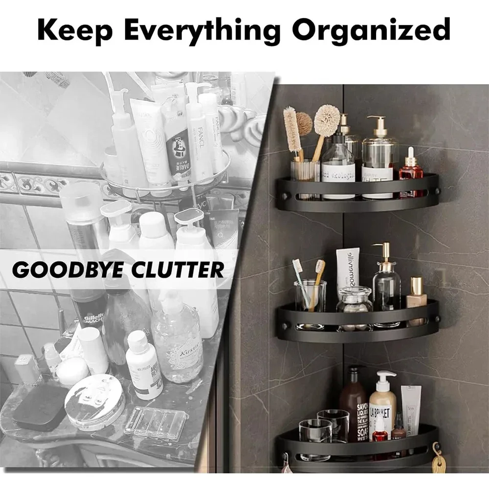 This set is not just for the shower; use them in other areas of your bathroom to store lotions, skincare products, or decorative items. Their corner-fitting design ensures they blend seamlessly into any bathroom layout, making efficient use of often-underutilized space. The robust plastic construction is designed to resist rust and corrosion, ensuring longevity even in high-humidity environments.
