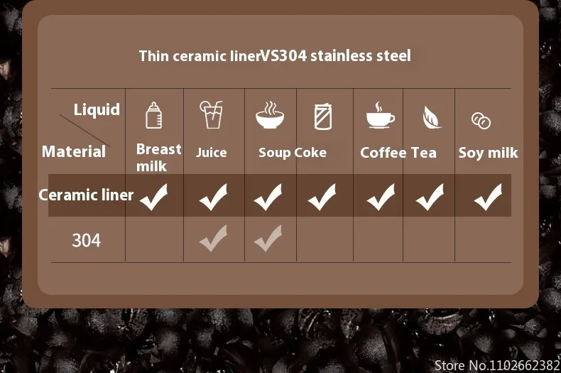 Constructed from high-grade stainless steel with a non-toxic ceramic inner lining, this mug is both robust and easy to clean. Hand washing is recommended to preserve the ceramic surface and maintain optimal performance. This product belongs to the Fashion and Home Accessories categories, combining aesthetic appeal with everyday utility. Invest in this elegant and functional thermos cup to enjoy your beverages exactly how you want them, wherever life takes you.