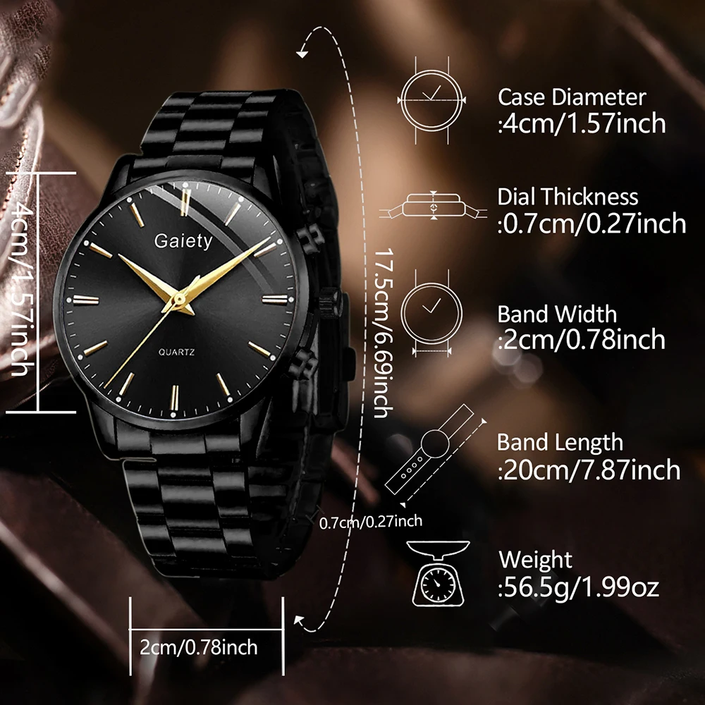 This 4 PC Black Men's Minimalist Watch Set is an ideal choice for a thoughtful and impressive gift. Its comprehensive nature eliminates the need to coordinate individual pieces, offering a hassle-free way to achieve a consistently polished look. It makes an excellent present for birthdays, anniversaries, graduations, Father's Day, or any special occasion where you wish to show appreciation for a man who values quality, sophisticated design, and a complete style solution. Present the gift of timeless elegance and watch him embrace a new level of confidence and personal expression.