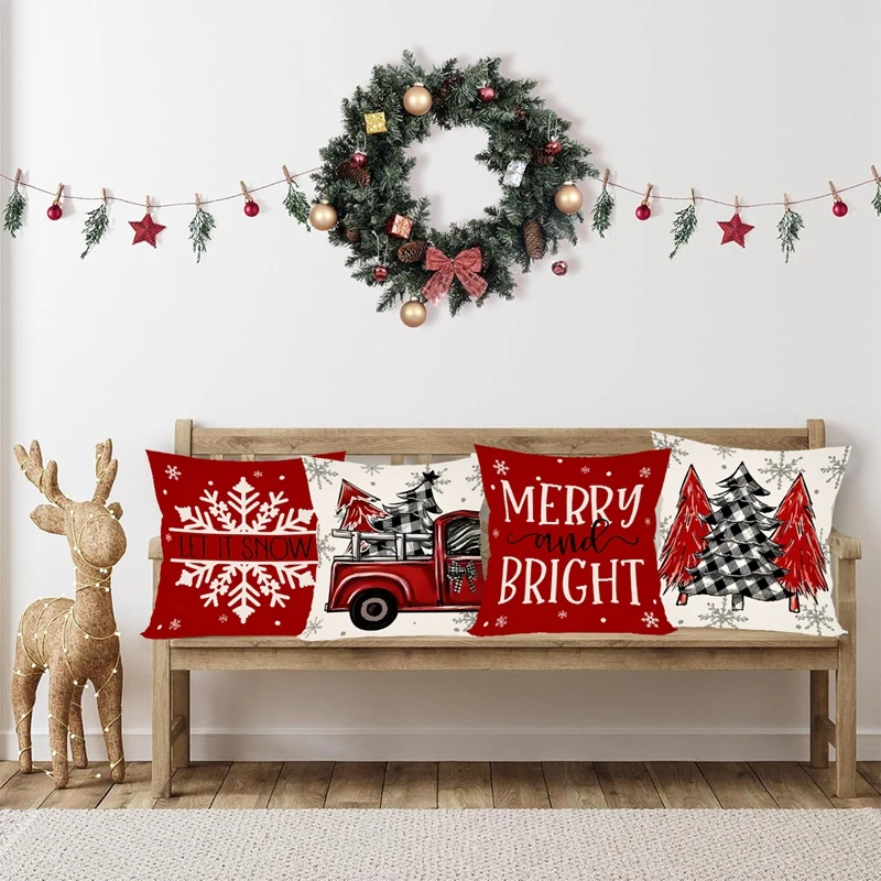 4 Pcs Christmas Pillow Covers 45×45 cm – Festive Navidad Xmas Throw Pillowcases for Your Home Sofa Couch Christmas Decorations 2025