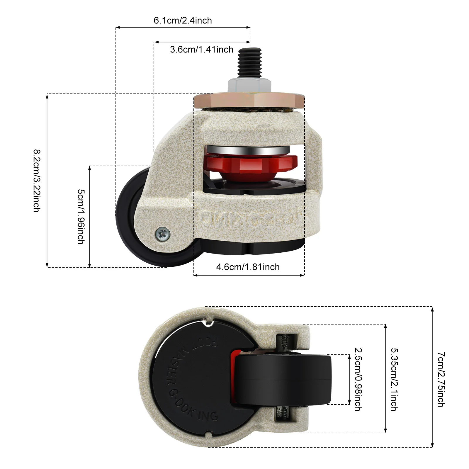 – Integrated locking system to secure the caster in place, preventing unwanted movement.