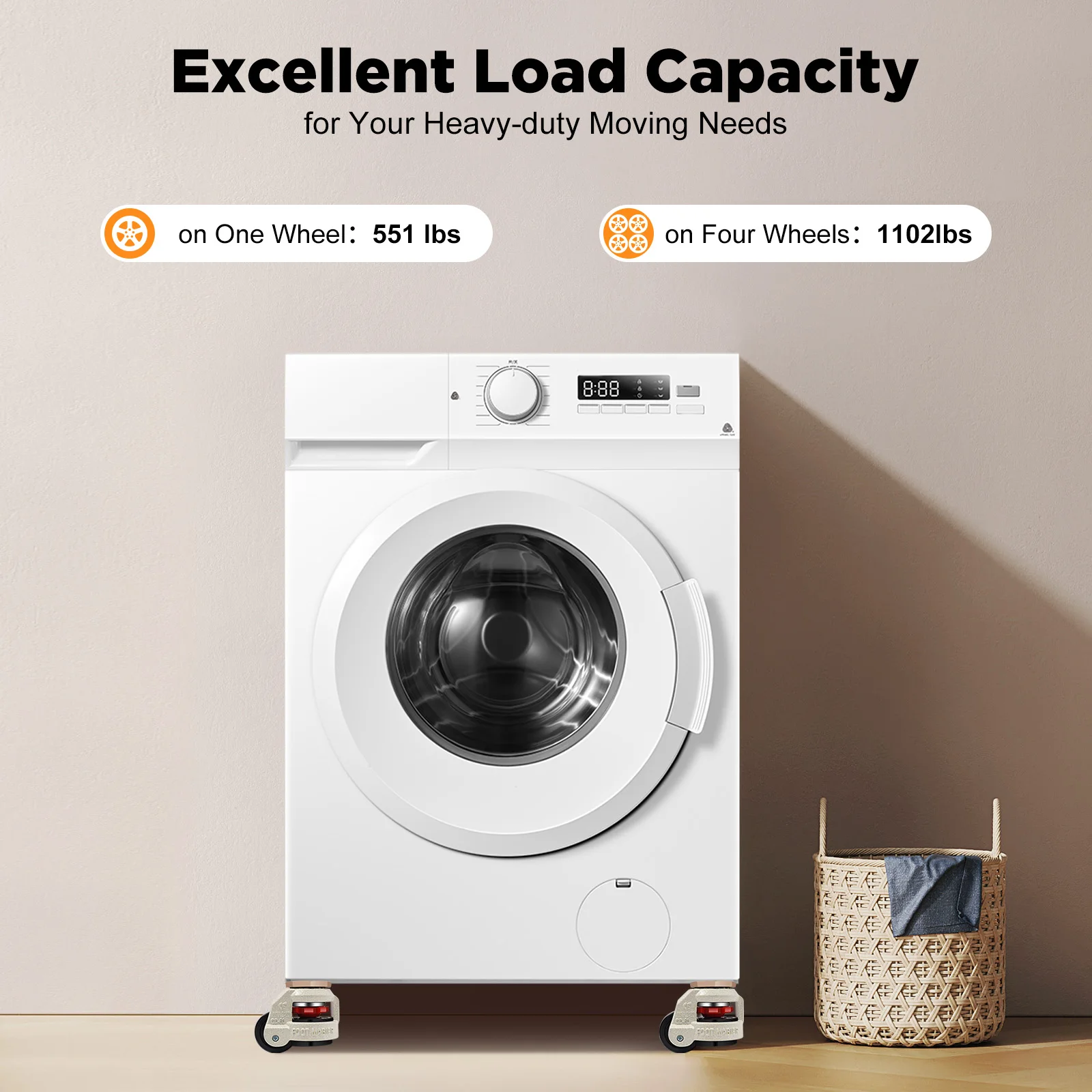 – Heavy-duty load capacity of 550 lbs per caster, supporting substantial weight reliably.