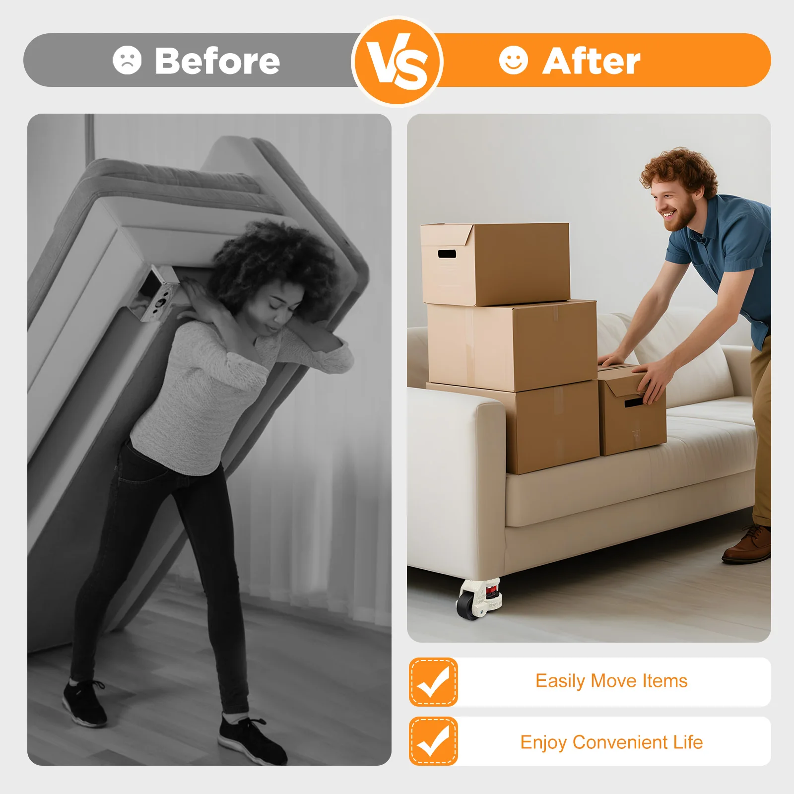 – High load capacity: Each caster supports up to 550 lbs, perfect for heavy furniture or medical devices.