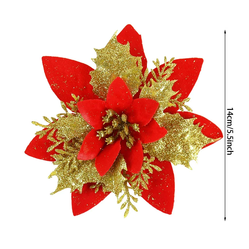 Our Artificial Christmas Tree Flowers are made from premium quality, non-toxic materials, ensuring both beauty and safety for your home. The glitter is securely applied to prevent shedding, maintaining their pristine appearance throughout the festive season. To care for your ornaments, simply dust them gently with a soft cloth. These decorations are designed for indoor use and are a reusable, eco-friendly alternative to single-use decorations. Embrace the magic of the holidays and let these exquisite glitter flowers bring an unparalleled sparkle to your Merry Christmas and Happy New Year celebrations.