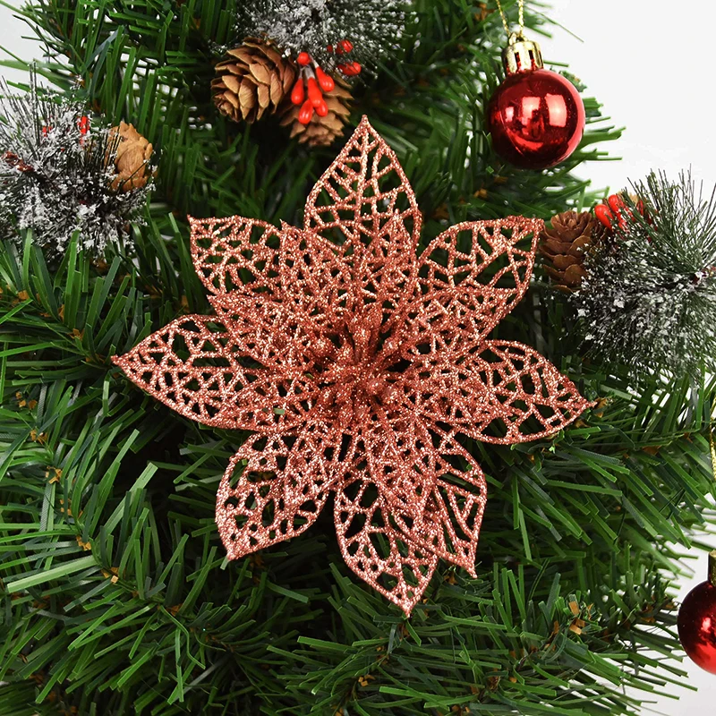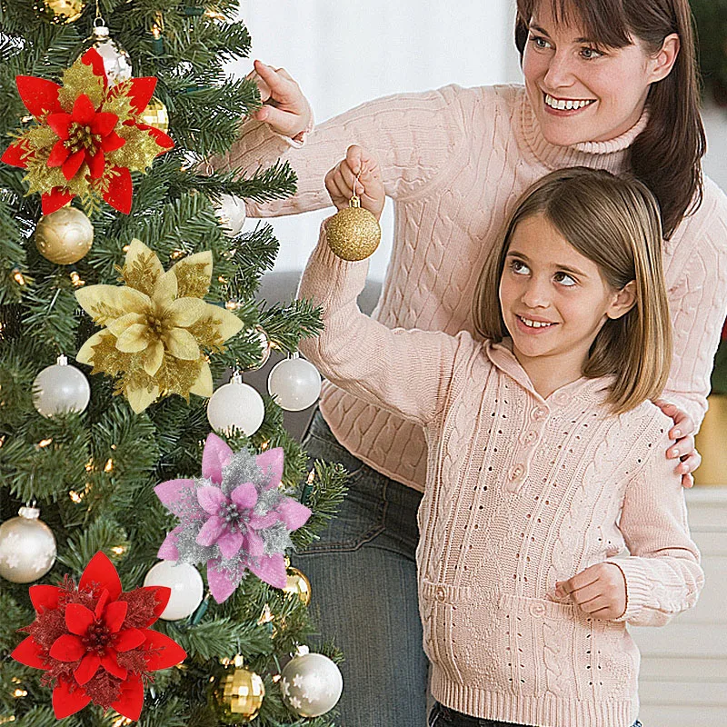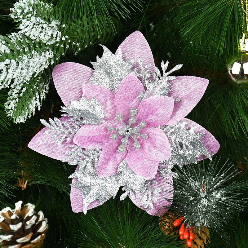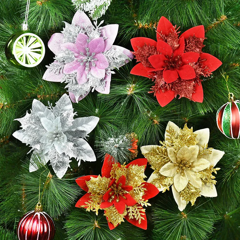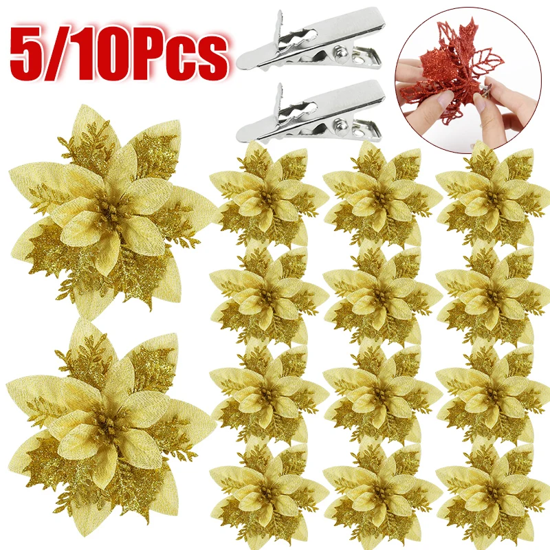 5/10 pcs Artificial Christmas Tree Flower Glitter Decoration Xmas Tree Ornaments Merry Christmas Decor For Happy New Year Navidad