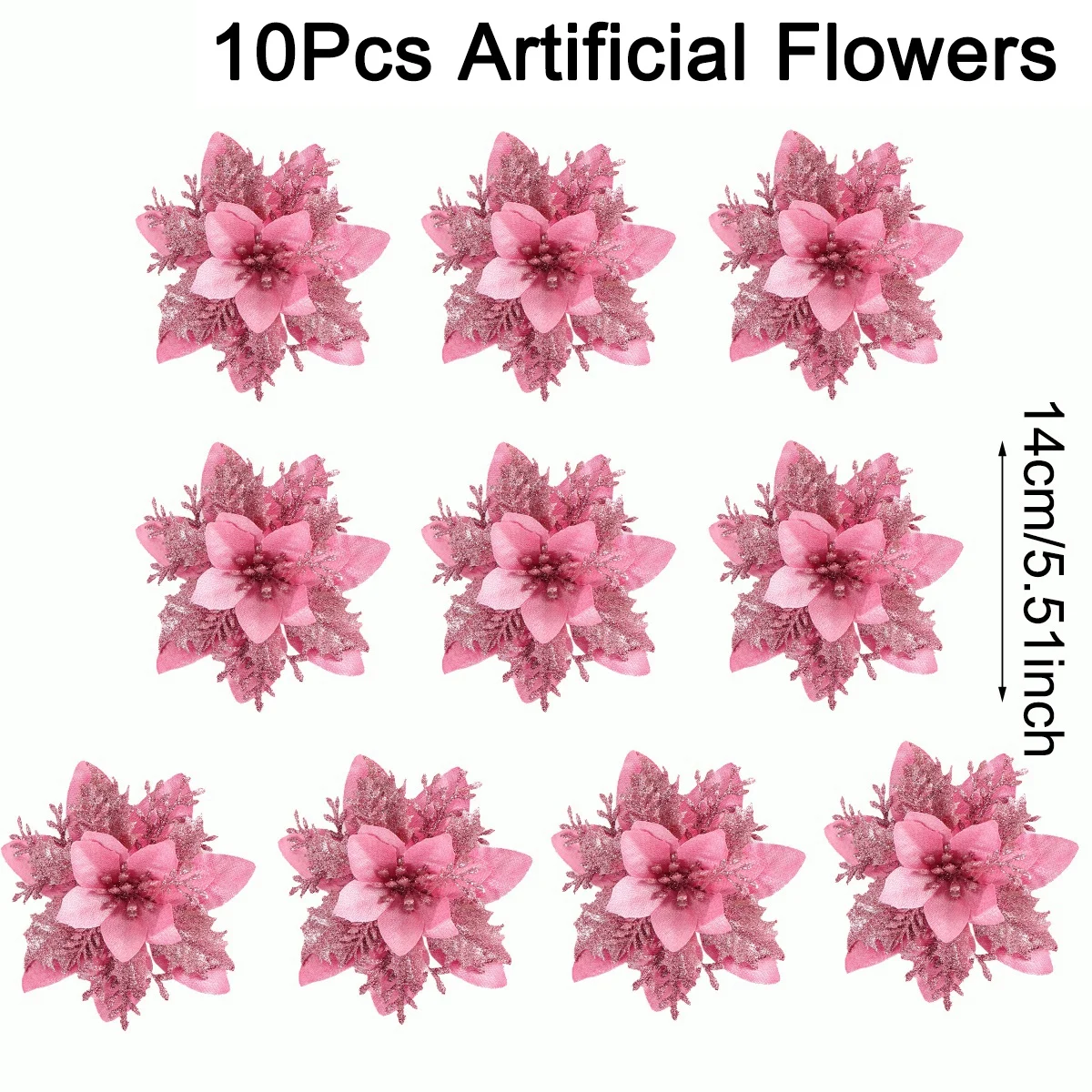 5/10 Pcs Pink Christmas Glitter Artificial Flowers for Festive Home Decor