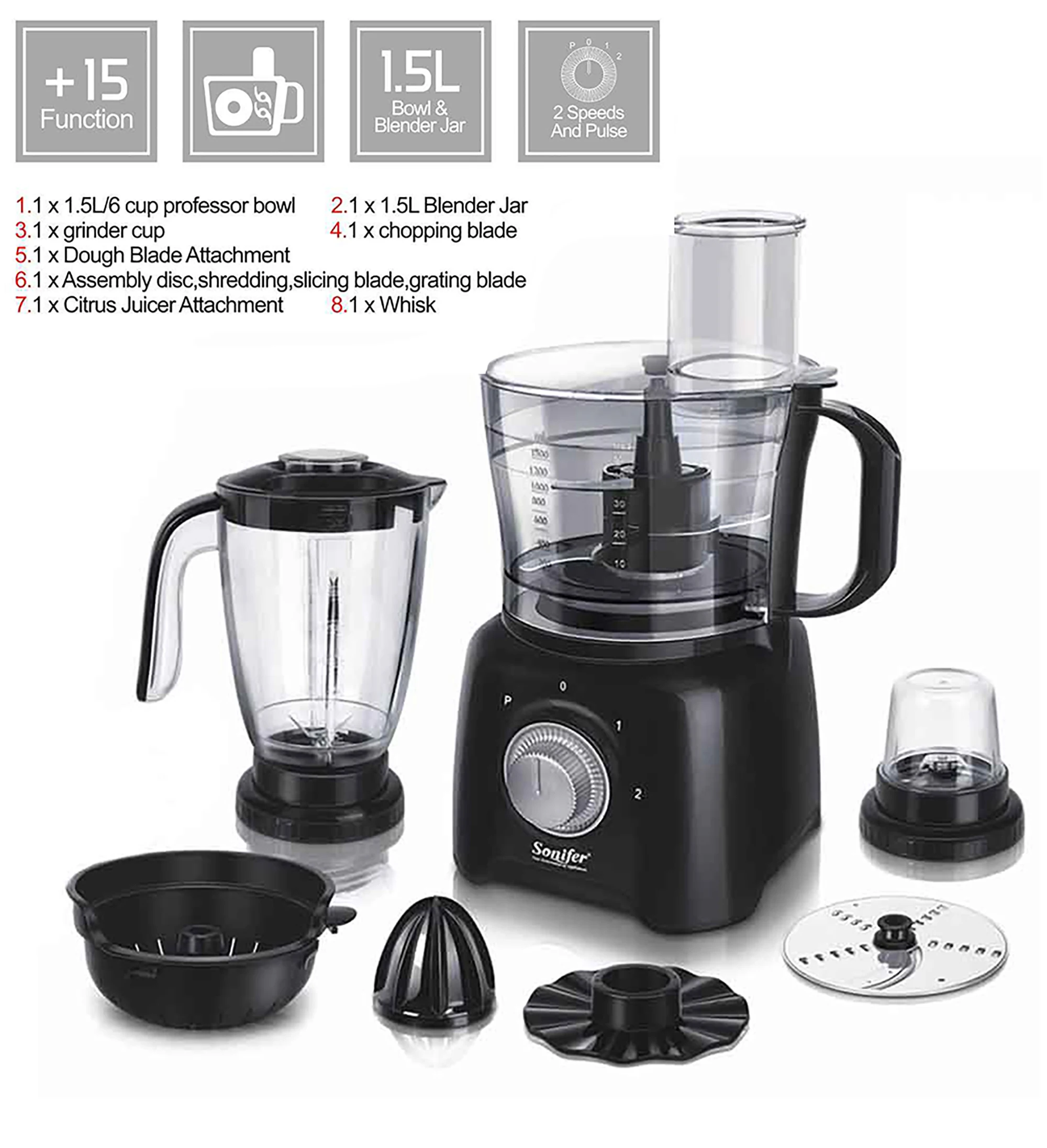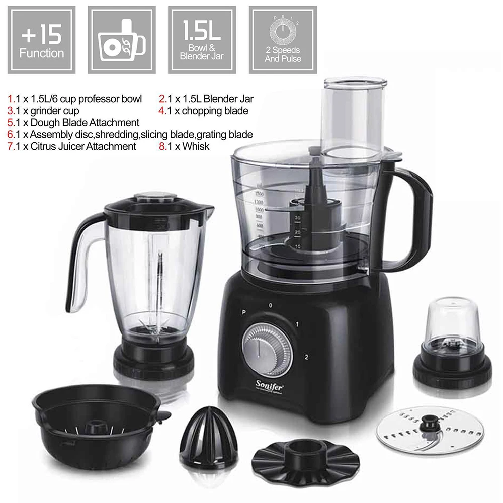The Sonifer 5-in-1 is more than just a blender; it’s a complete kitchen solution. Its robust 400W motor effortlessly tackles a wide range of tasks, ensuring you can prepare healthy juices, creamy smoothies, perfectly ground ingredients, and much more with unparalleled ease. Save time, space, and effort with this all-in-one appliance that simplifies even the most demanding culinary projects.