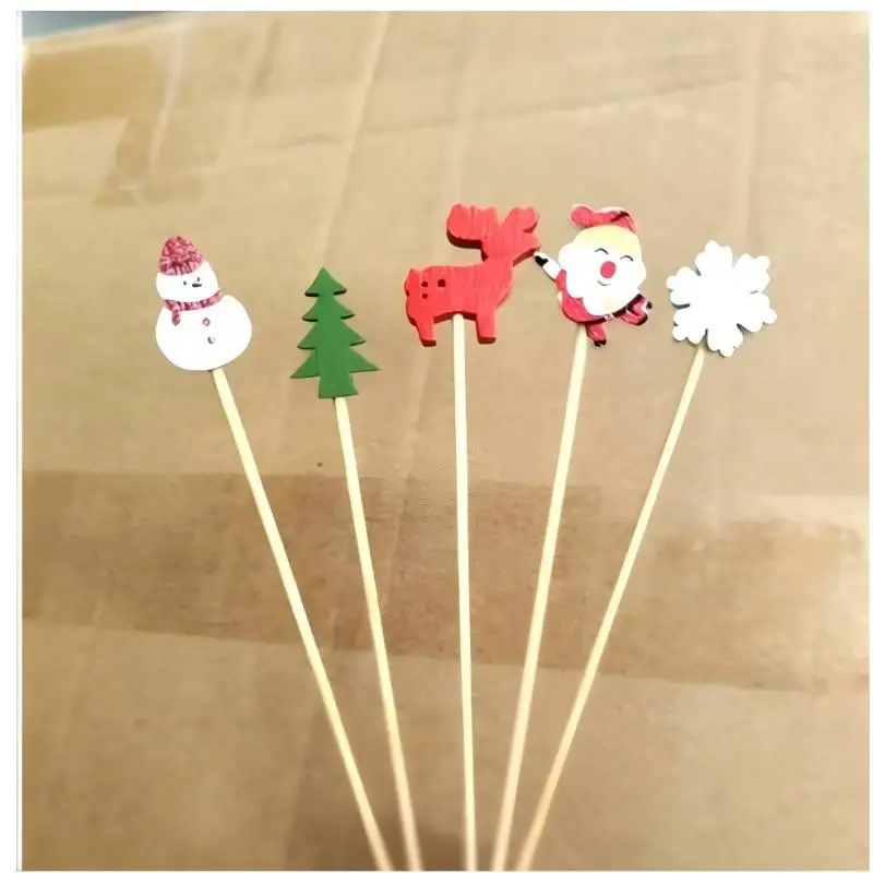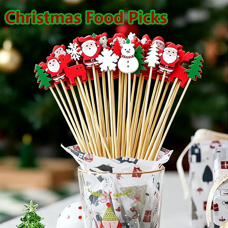 50/100 Pcs Christmas Bamboo Food Picks – Santa Dessert Buffet Fruit Salad Christmas Decoration New Year Xmas Party Supplies