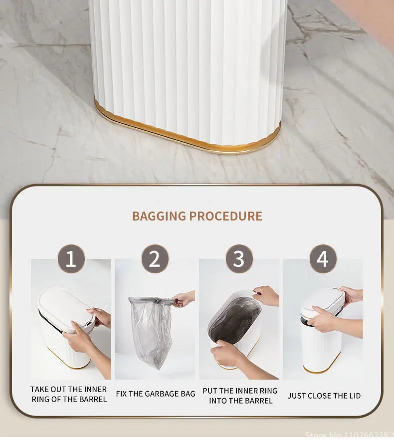 Crafted from premium ABS and PP materials, this smart trash can is built to withstand daily use. The internal bucket is removable for easy cleaning and emptying. To maintain optimal performance, we recommend wiping the exterior with a damp cloth. For battery-powered models, ensure you use high-quality batteries. The USB charging option provides an eco-friendly and cost-effective alternative. Available in 7 L Gold, 5 L Gold, 9 L Grey, 9 L Gold, and 7 L Grey.
