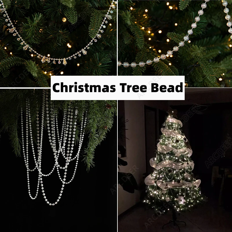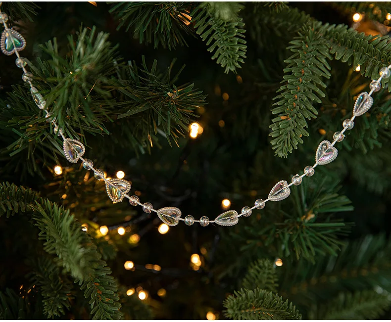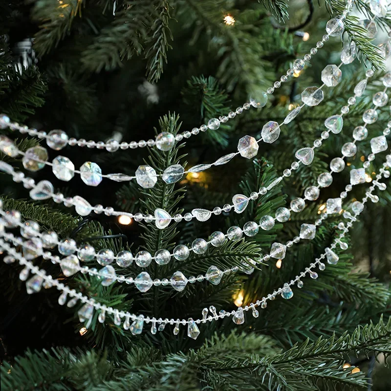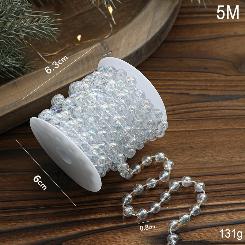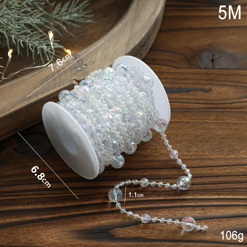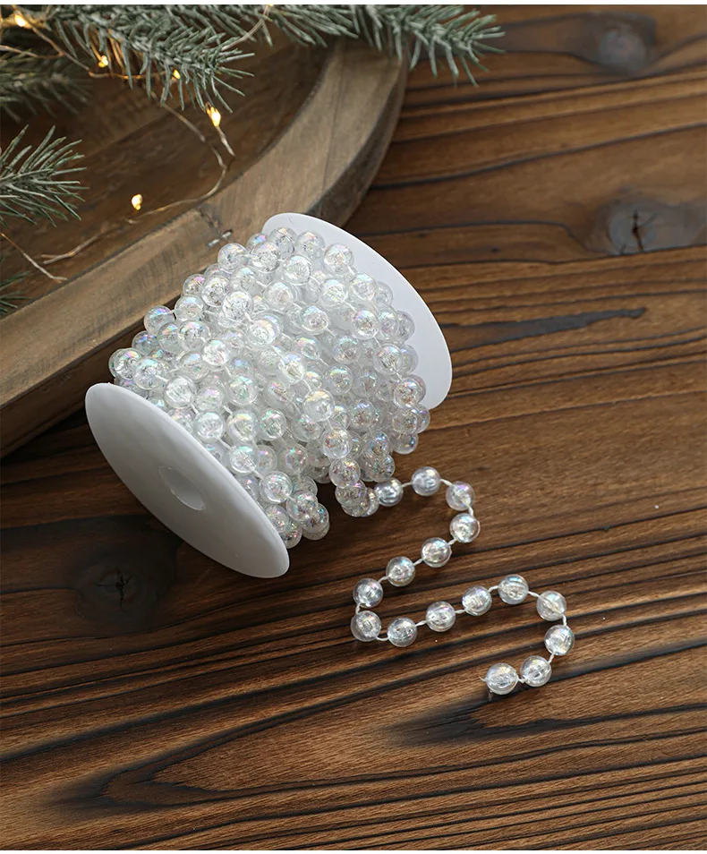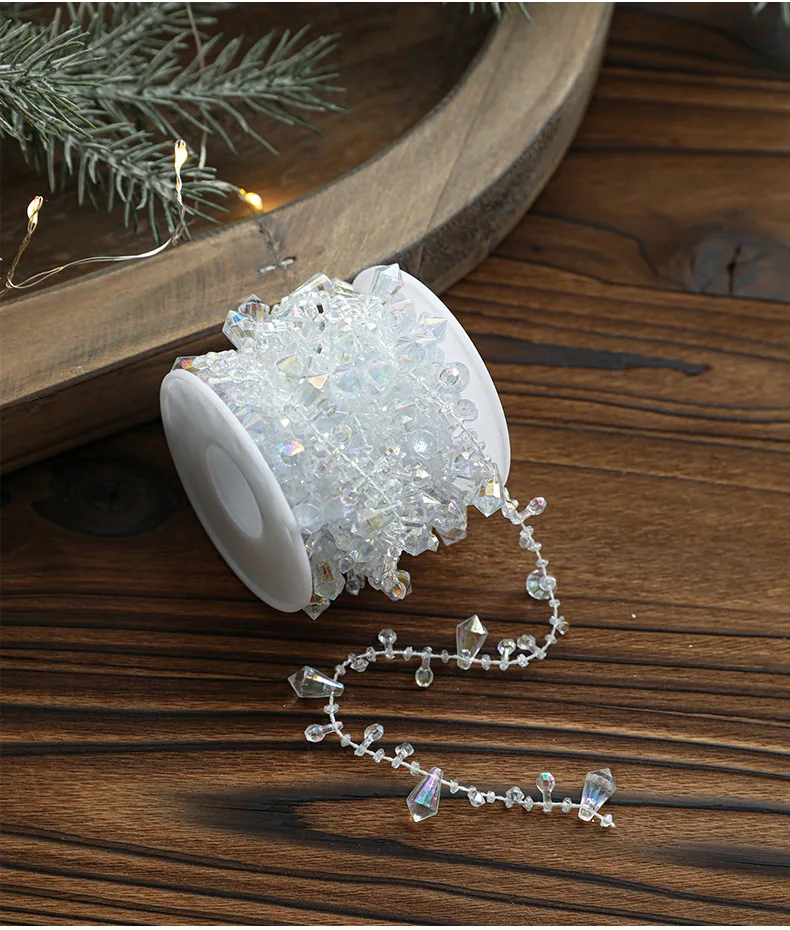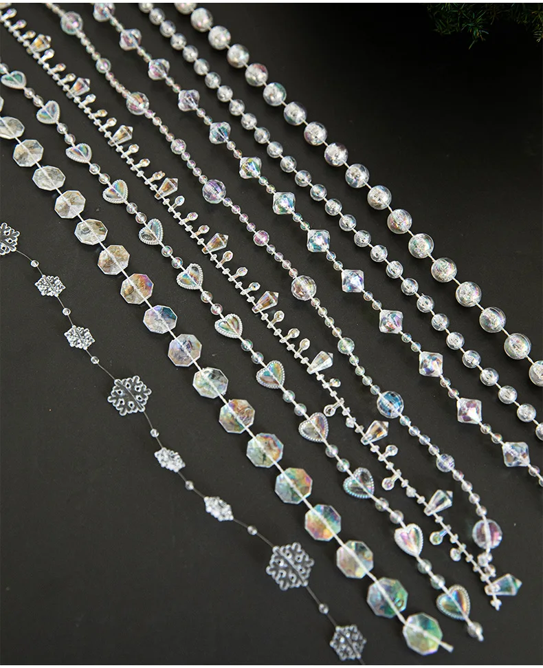 5M Christmas Tree Bead Garland – Iridescent Silver Crystal Gems for Stunning DIY Decor
