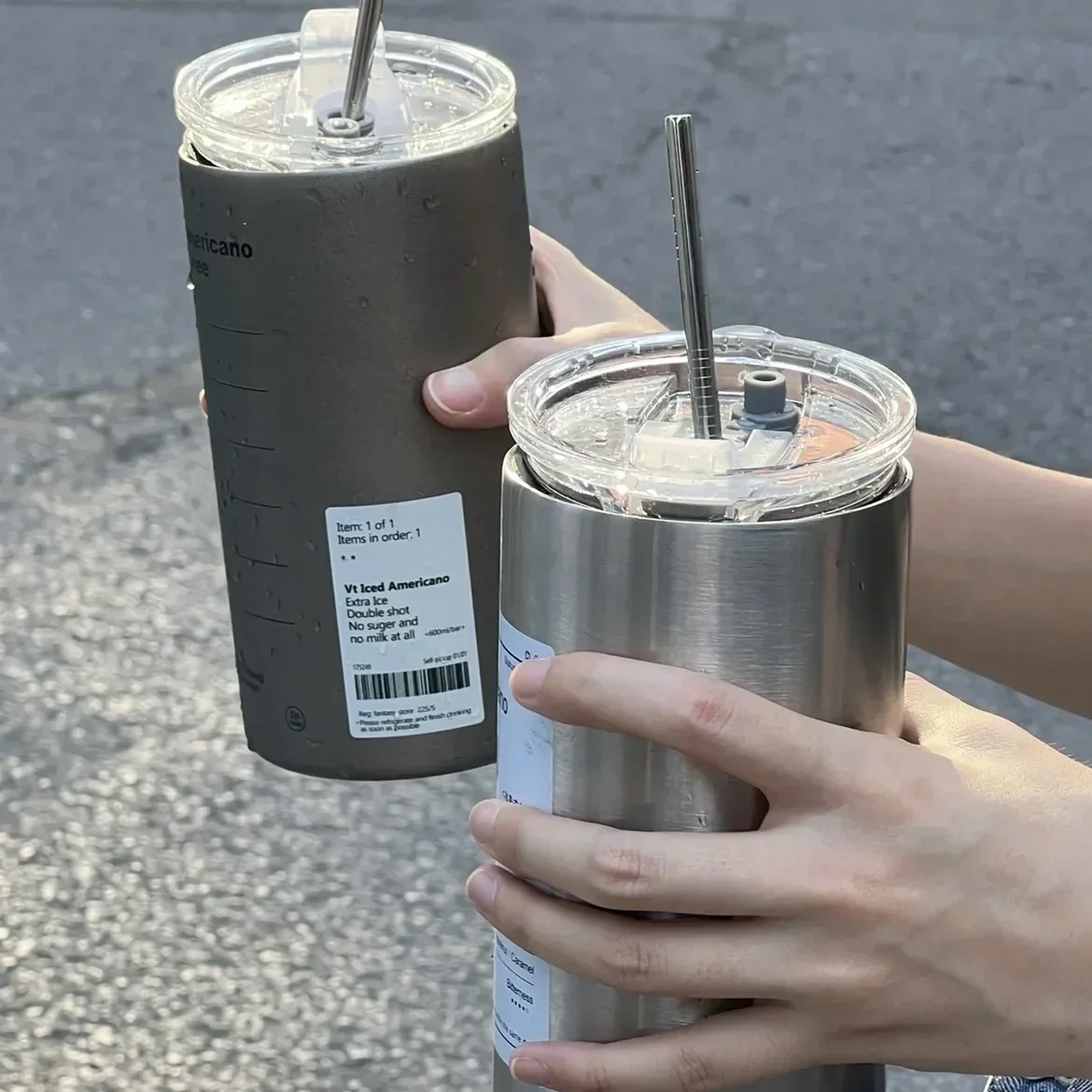 Sip in style with this 600ml 304 Stainless Steel Thermos Cup. Enjoy hot or cold drinks for hours, leak-proof design, and convenient straw. Perfect for on-the-go. Available in sliver, gray, milk white. Ships from EU & UK.