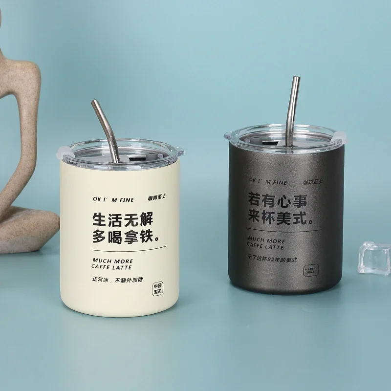 600ml Thermos Cup Portable 304 Stainless Steel Coffee Mug Thermal Leak-proof Water Bottle with Straw Insulated Bottle Drinkware