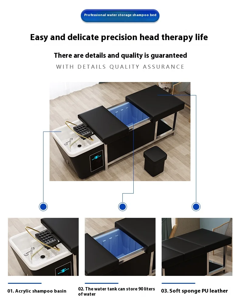 60L Water Storage Tank Head Spa Shampoo Bed Salon Furniture Water Pipe-Free Beauty Salon Massage Bed