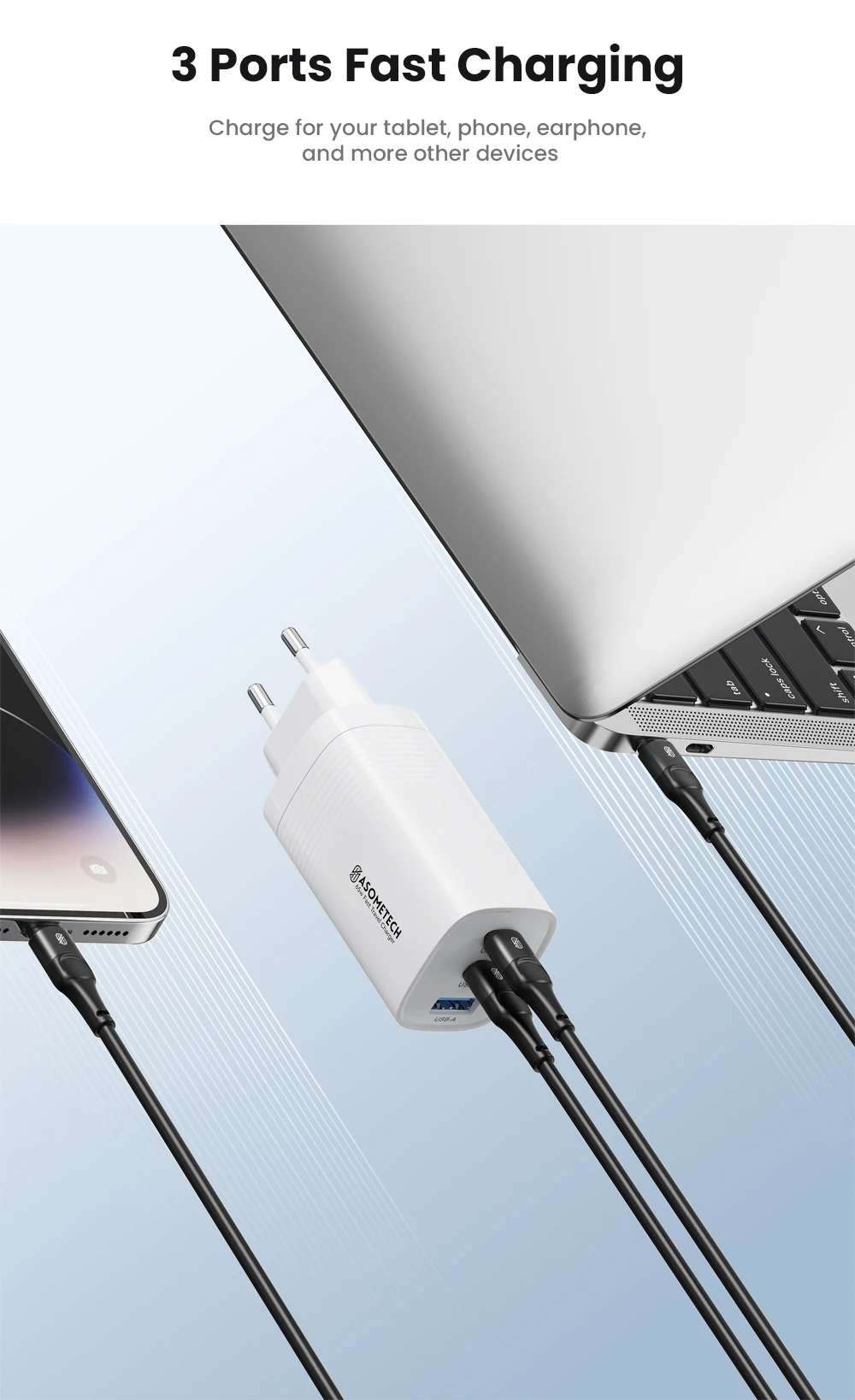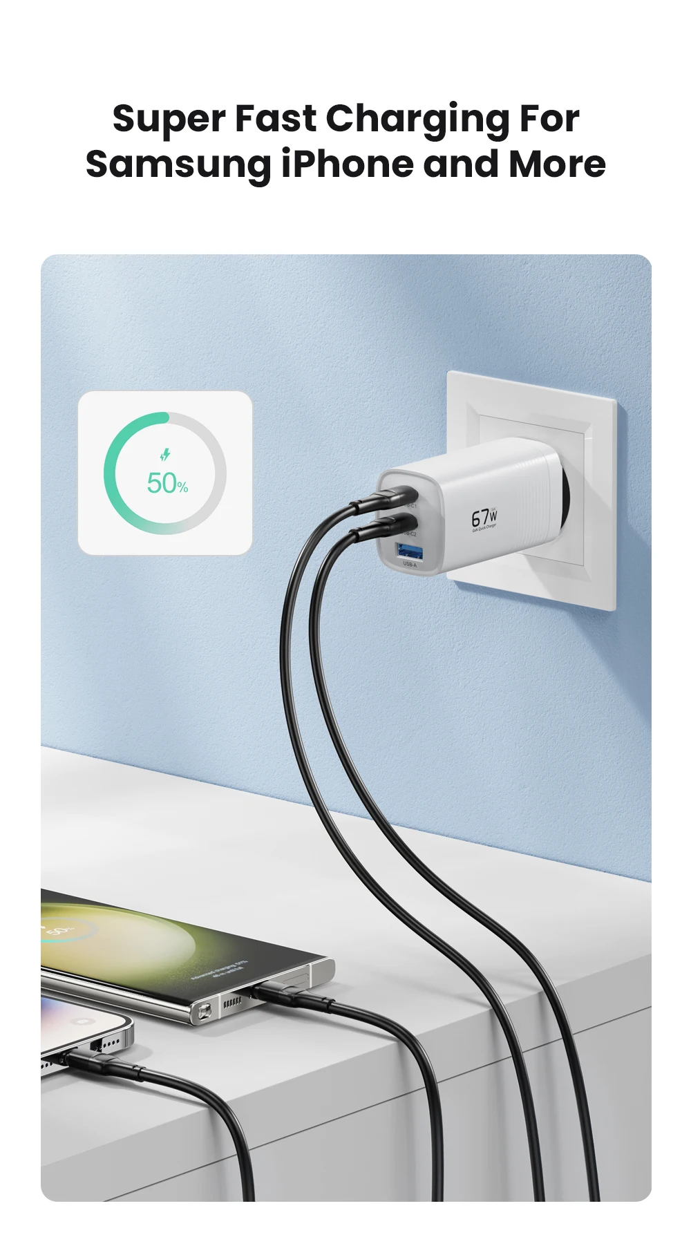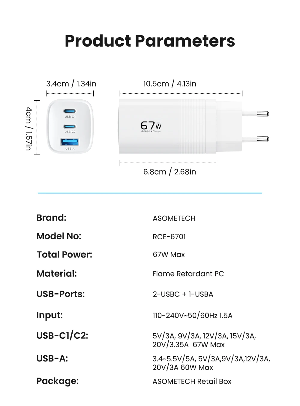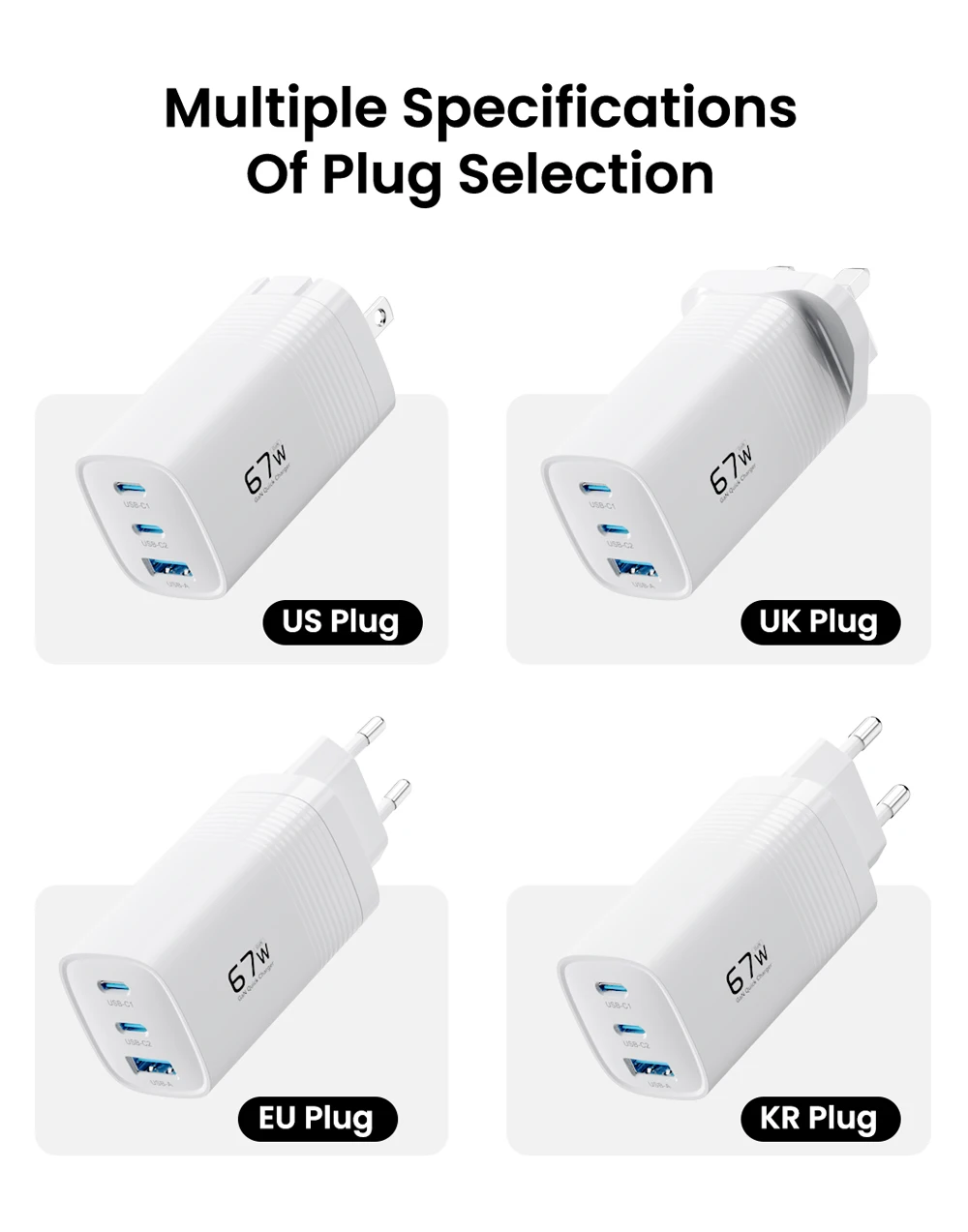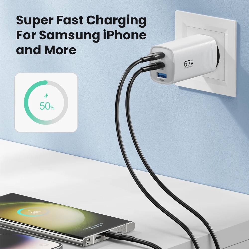 This 67W GaN Charger drastically reduces charging time, allowing you to power your devices from zero to full in a fraction of the time compared to conventional chargers. Its universal compatibility means you can use it to charge a wide range of devices without the need for multiple chargers. Whether you are at home, in the office, or on the go, this charger’s compact form factor and robust safety features provide peace of mind and convenience. Simply plug it in and enjoy efficient, reliable power that keeps your devices ready whenever you need them.