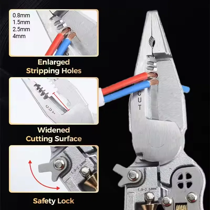 This all-in-one tool streamlines your electrical work by combining essential functions into a single device, reducing clutter and increasing efficiency. Its precise wire stripping and clean cuts help prevent wire damage, enhancing safety and reliability in electrical installations. The integrated voltage tester offers immediate feedback, minimizing the risk of electrical hazards. Ergonomically designed to reduce hand fatigue, it delivers comfort during extended use, making it ideal for professionals and hobbyists alike.