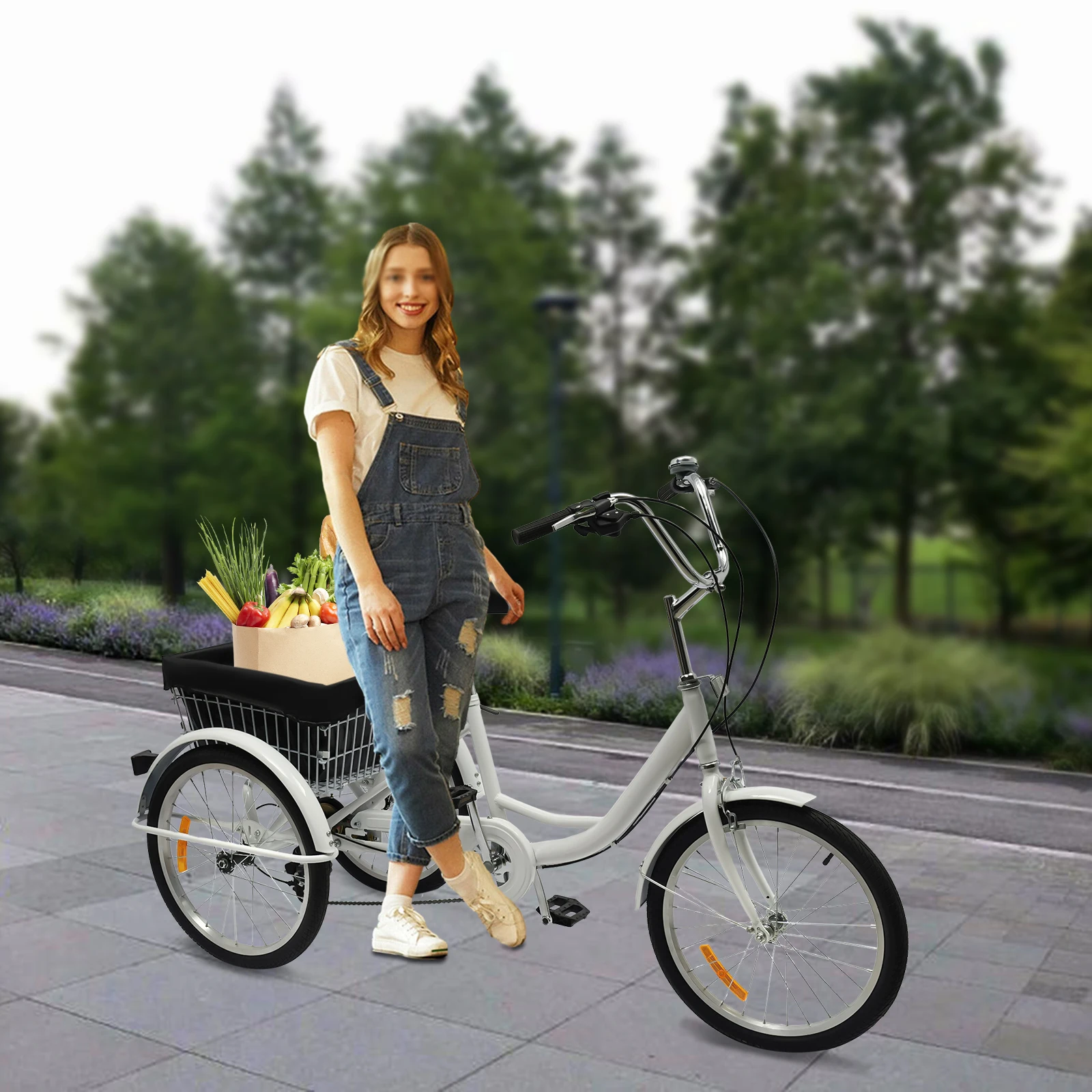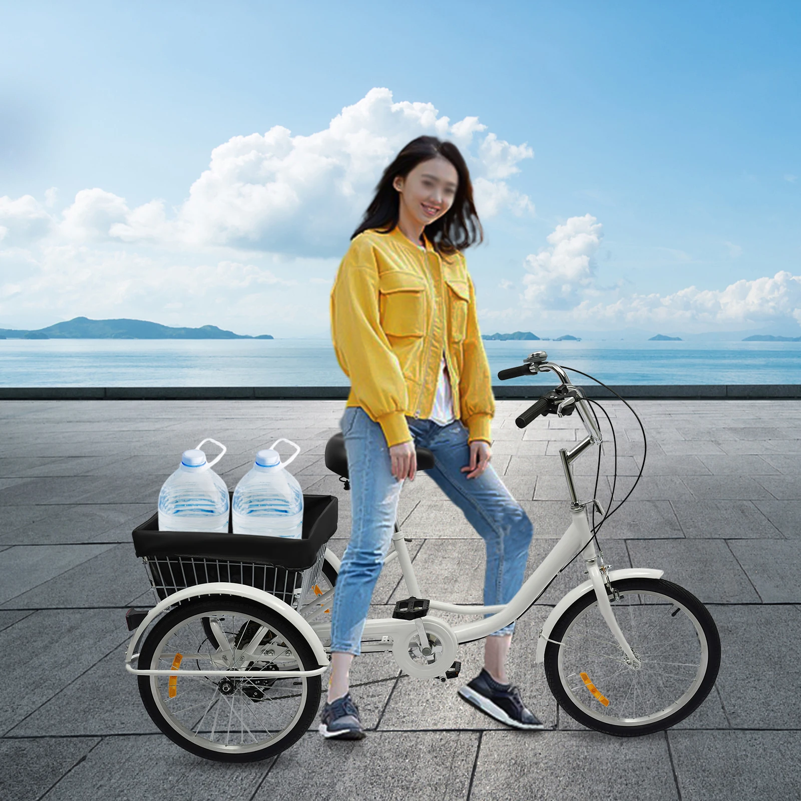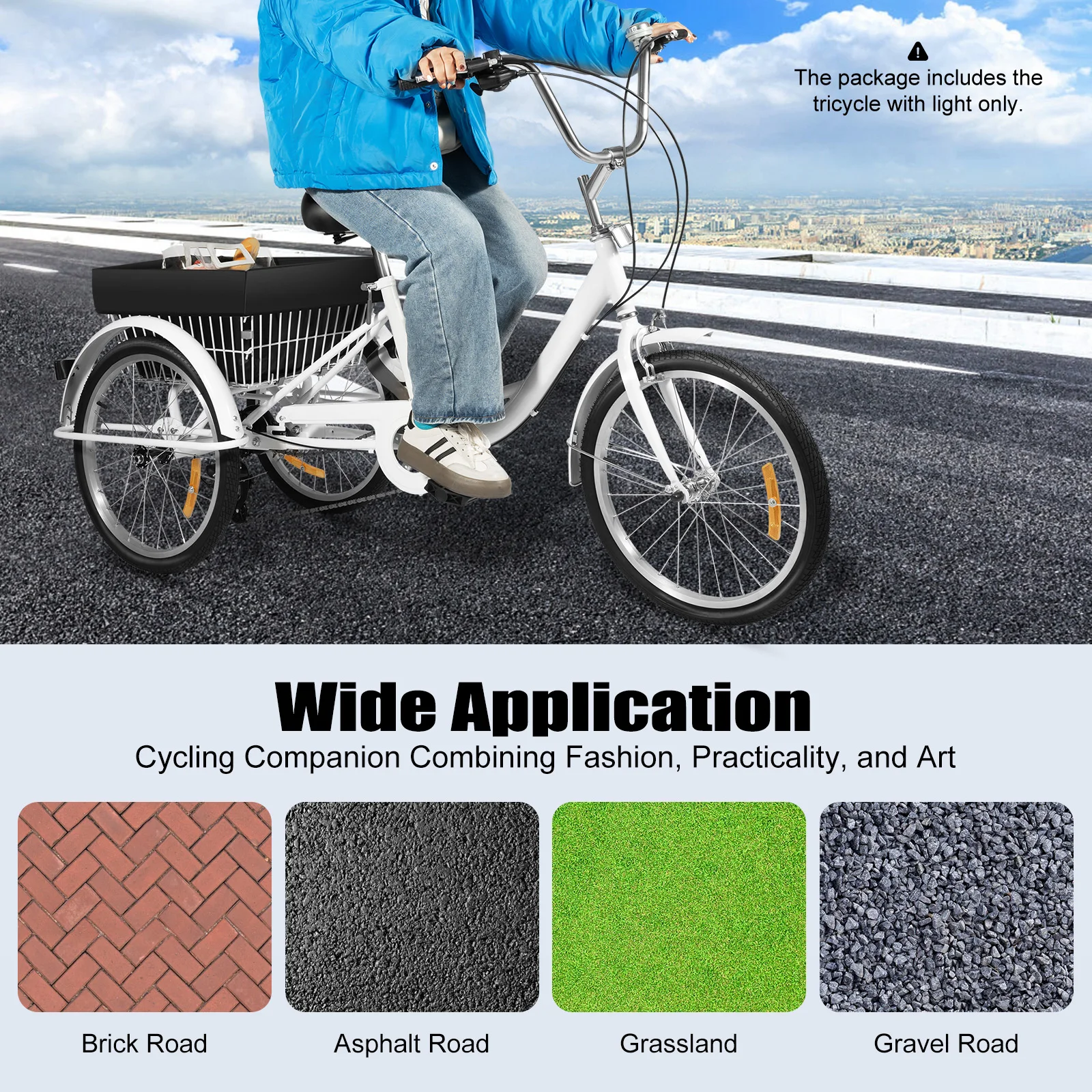 This adult tricycle is perfect for individuals looking to combine fitness with leisure. The 8-speed gearing system allows you to adjust your effort according to the terrain, making uphill climbs and longer rides more manageable. Its stable three-wheel design eliminates the worry of balance, making it accessible for riders with varying mobility levels. The comfortable saddle and ergonomic build minimize fatigue, encouraging longer, more enjoyable outings. Additionally, the rear basket enhances practicality by providing ample storage space for errands or recreational items.