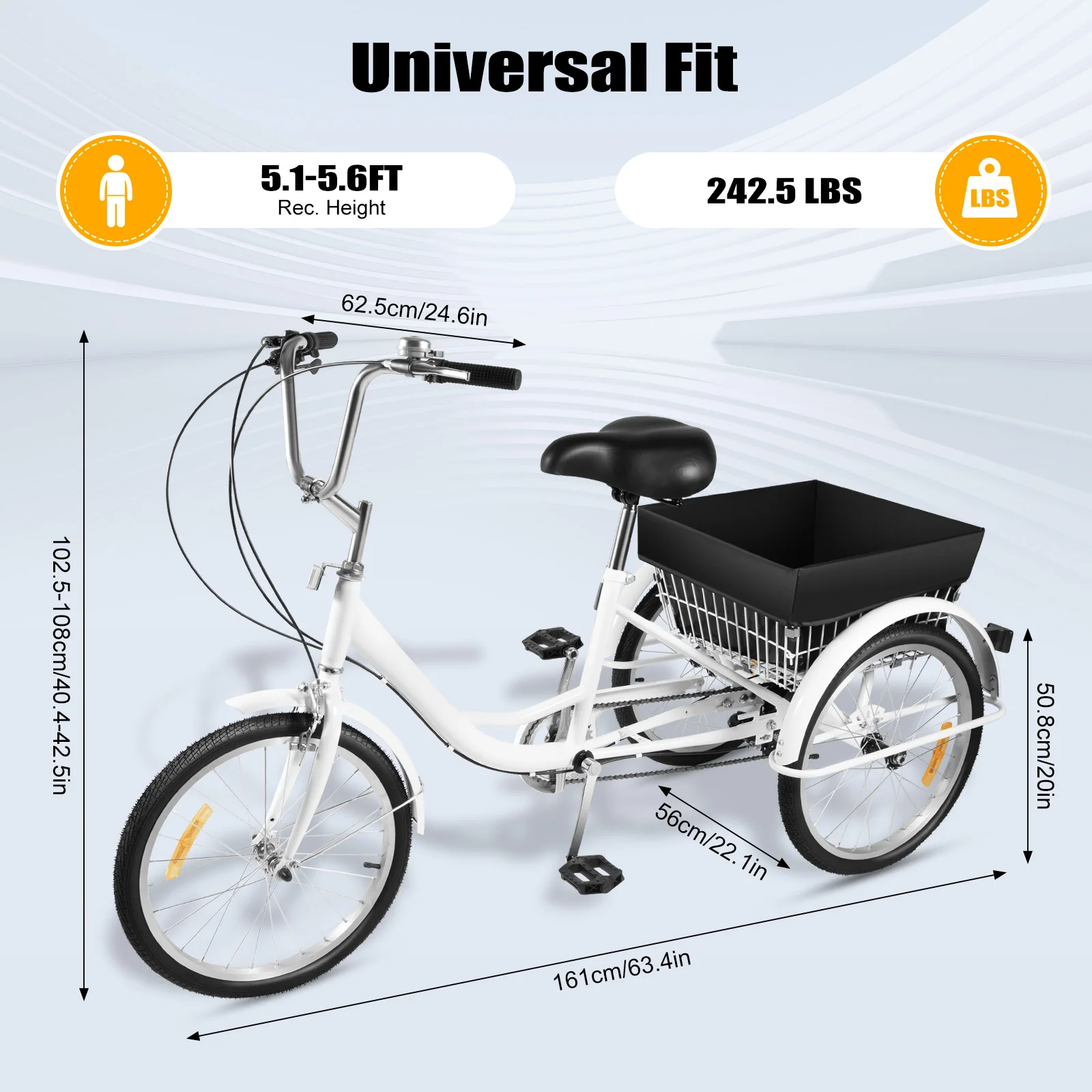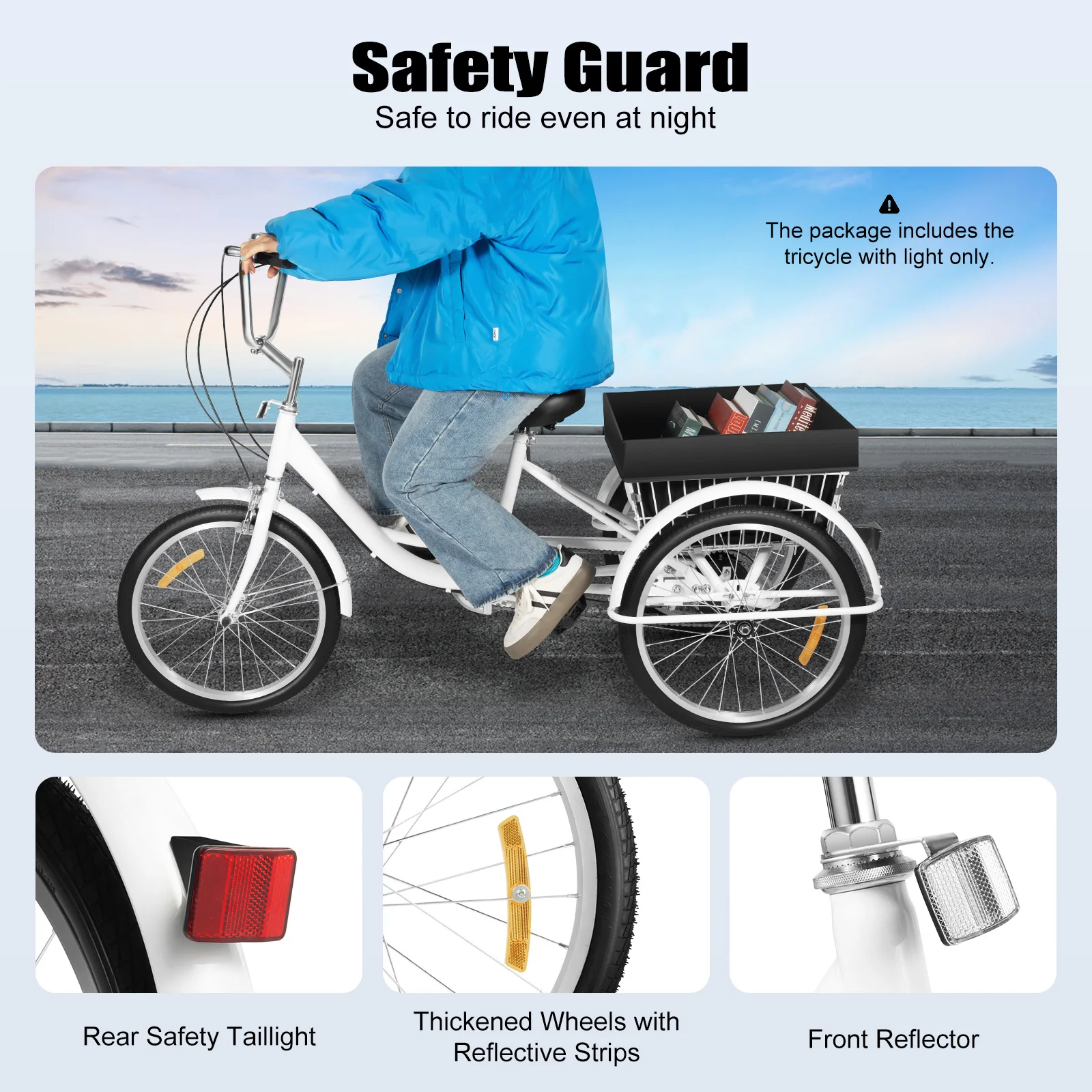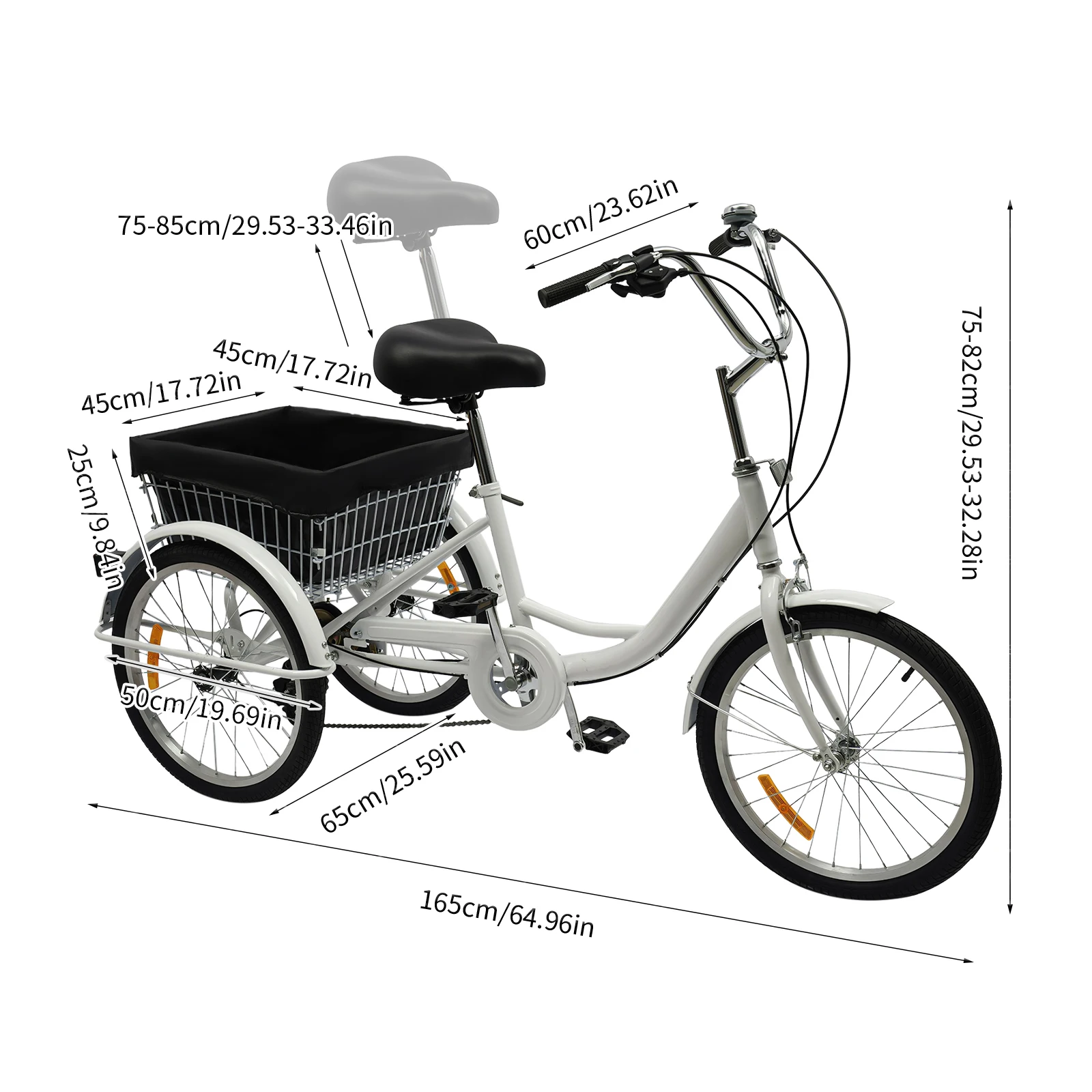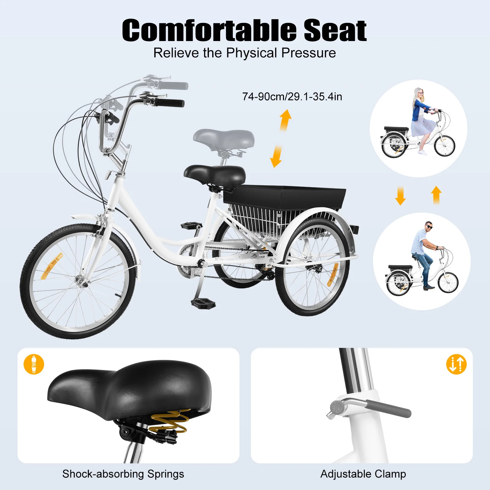 This adult tricycle is perfect for individuals looking to combine fitness with leisure. The 8-speed gearing system allows you to adjust your effort according to the terrain, making uphill climbs and longer rides more manageable. Its stable three-wheel design eliminates the worry of balance, making it accessible for riders with varying mobility levels. The comfortable saddle and ergonomic build minimize fatigue, encouraging longer, more enjoyable outings. Additionally, the rear basket enhances practicality by providing ample storage space for errands or recreational items.